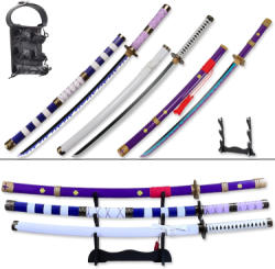 Roronoa Zoro 3 Piece Set Swords,Ni Dai Kitetsu,Enma,Wado Ichimonji,with Display Stand and Belt,for Role-Playing and Collection