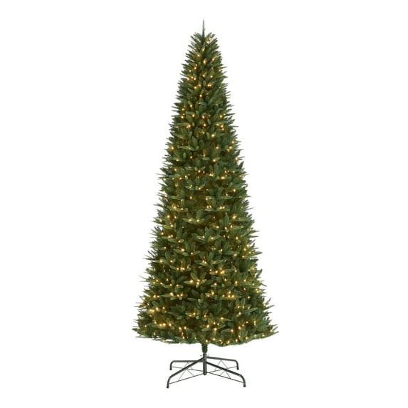 Holiday Time 12ft Pre-Lit Rockford Sure-Lit Pole Slim Pine Christmas Tree, 800 LED, Green
