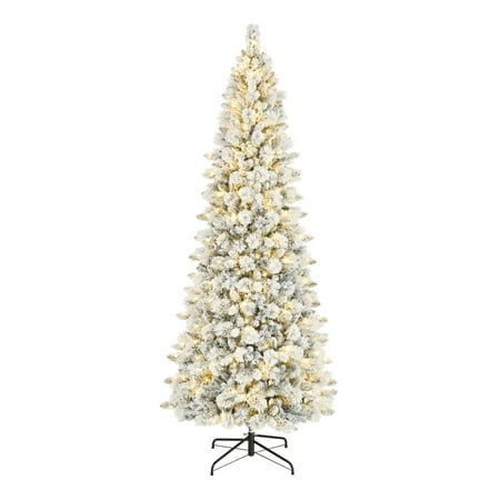 9 ft Pre-Lit Flocked Tahoe Spruce Artificial Christmas Tree Warm White LED Light