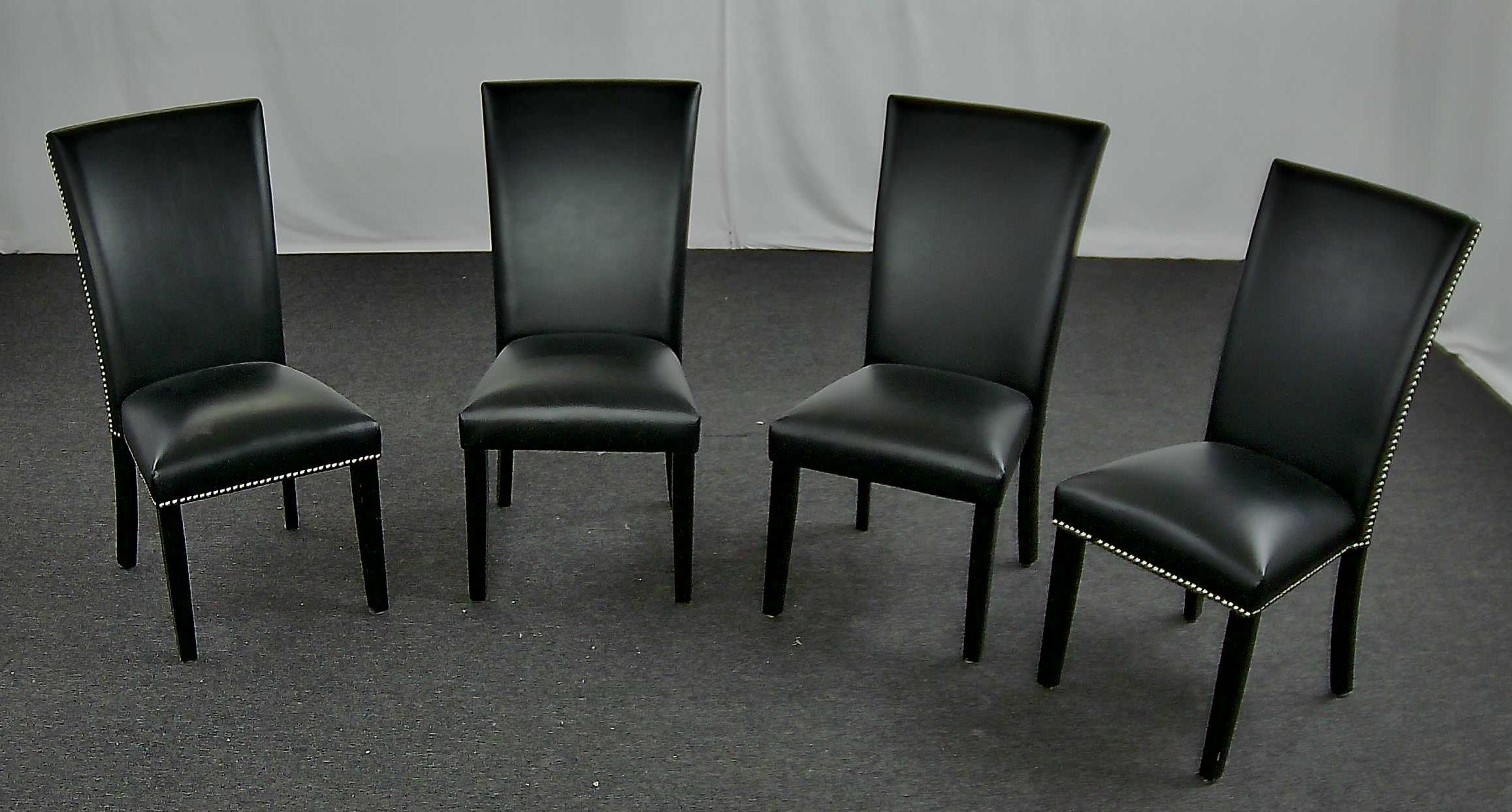 Set of 4 Black Leather Dining Chair (HOLE IN BACK OF ONE CHAIR). Pickup only.