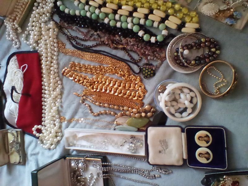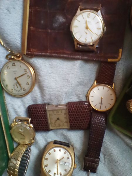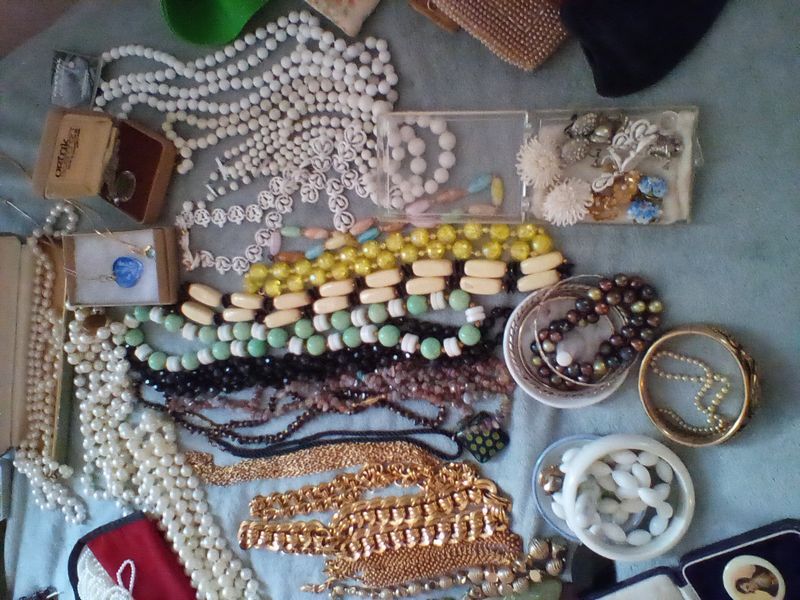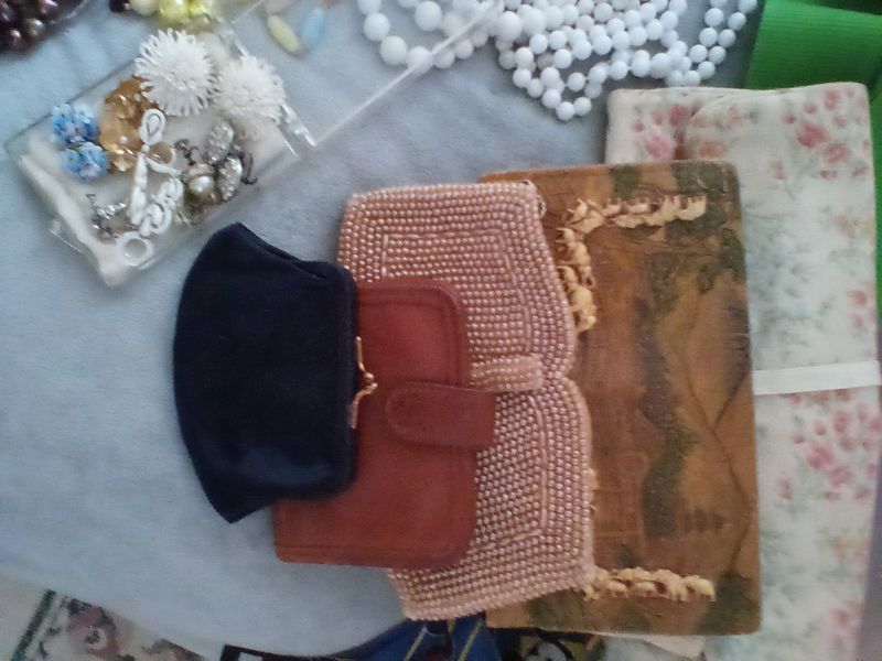 Jewelry, Watches, Purses. Vintage watches including pocket watch; wrist watches; watch in leather case (see photos); cuff links; tie pins; pearl necklaces; travel watch; more! See photos. Located on the second floor.