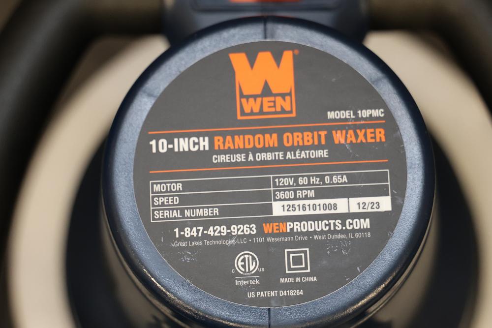WEN 10PMC 10-Inch Random Orbit Waxer with Accessories and Case. Includes 120V, 60Hz motor with 0.65A power and 3600 RPM speed. Comes with attachments and storage case. Pickup only.
