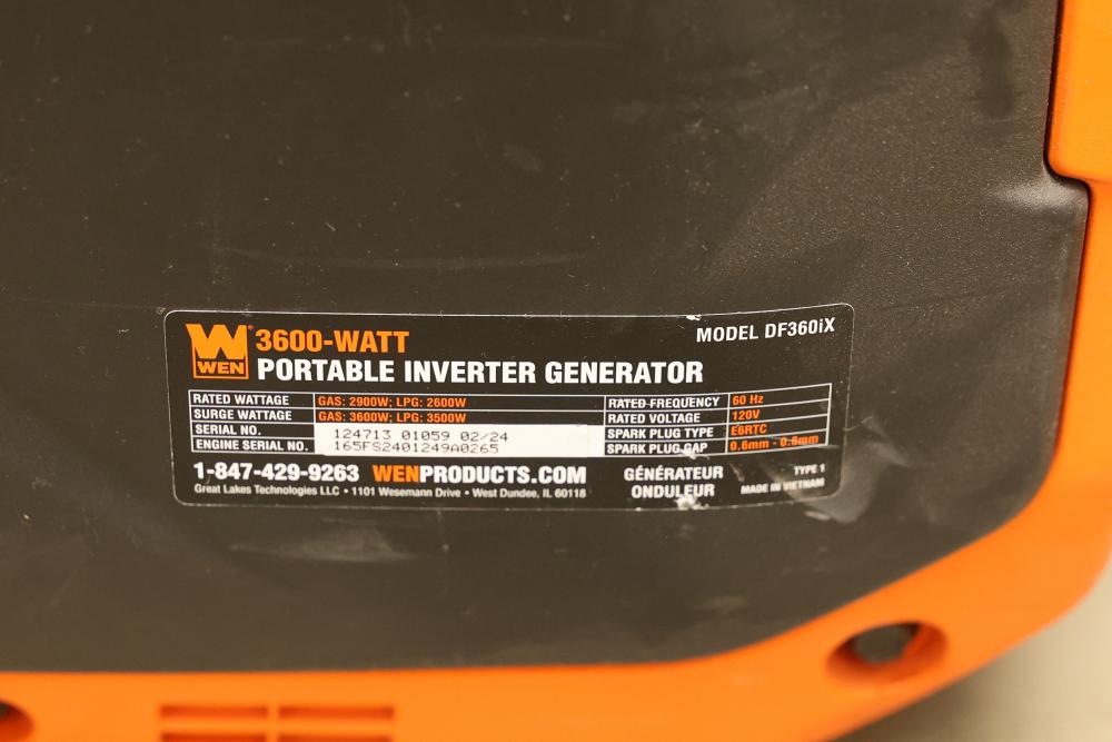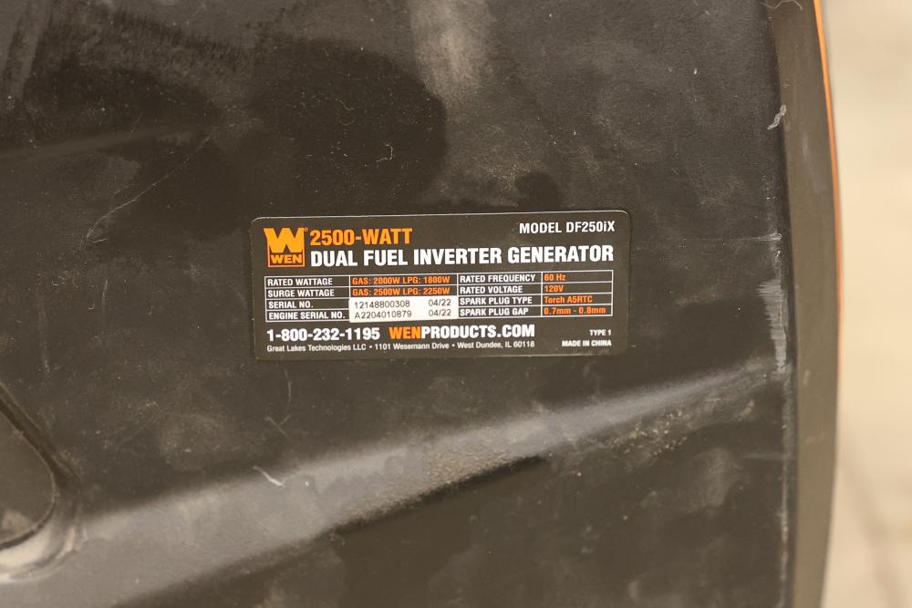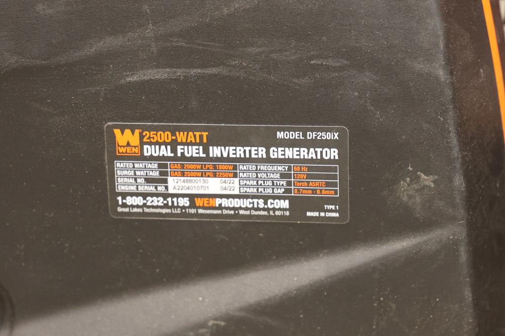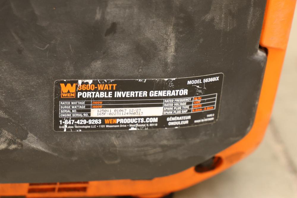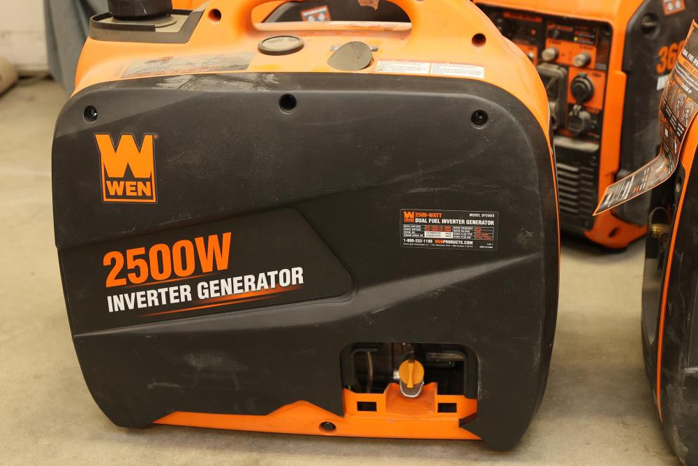 WEN Inverter Generators for Parts - Includes 1250W, 2500W, and 3600W Models. Multiple generators with various wattage ratings including 1250W (Model 56125), 2500W Dual Fuel (Model DF250iX), and 3600W Portable (Model DF360iX). Items are being sold as is for parts use only. Pickup only.