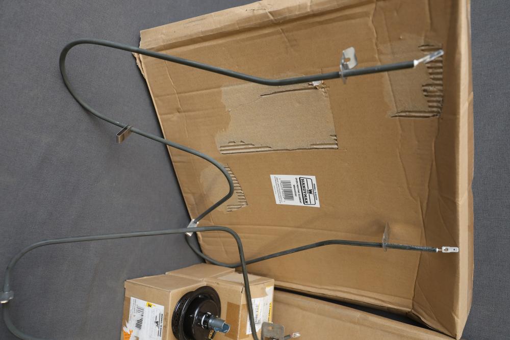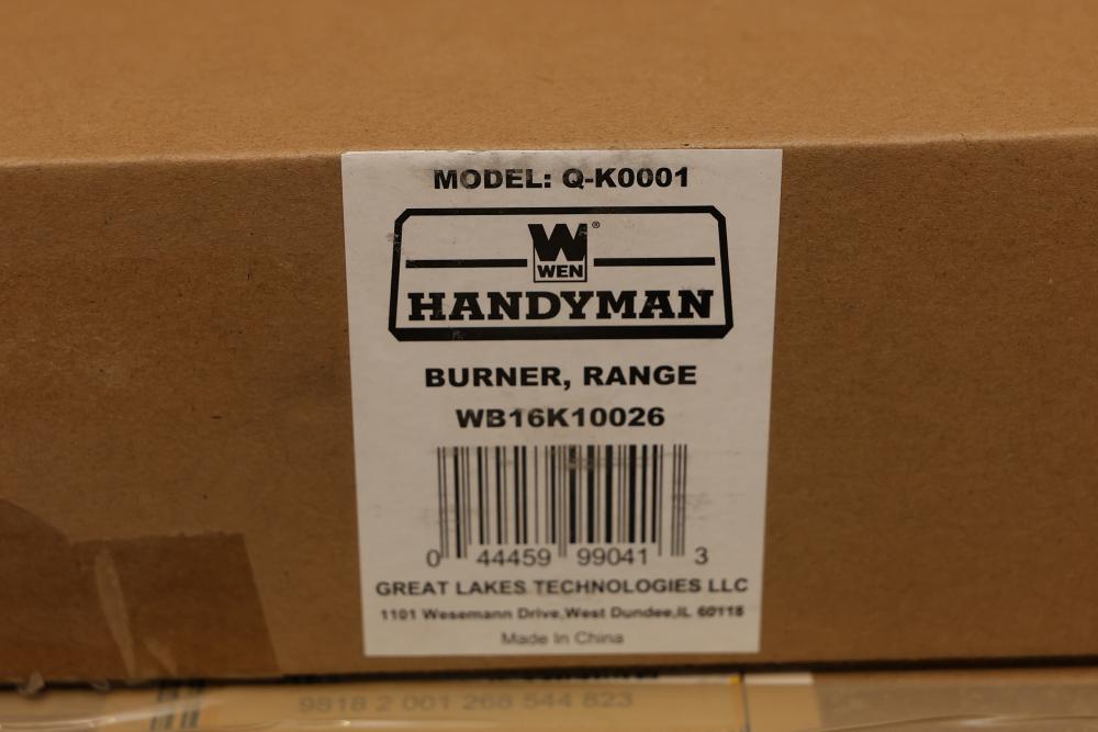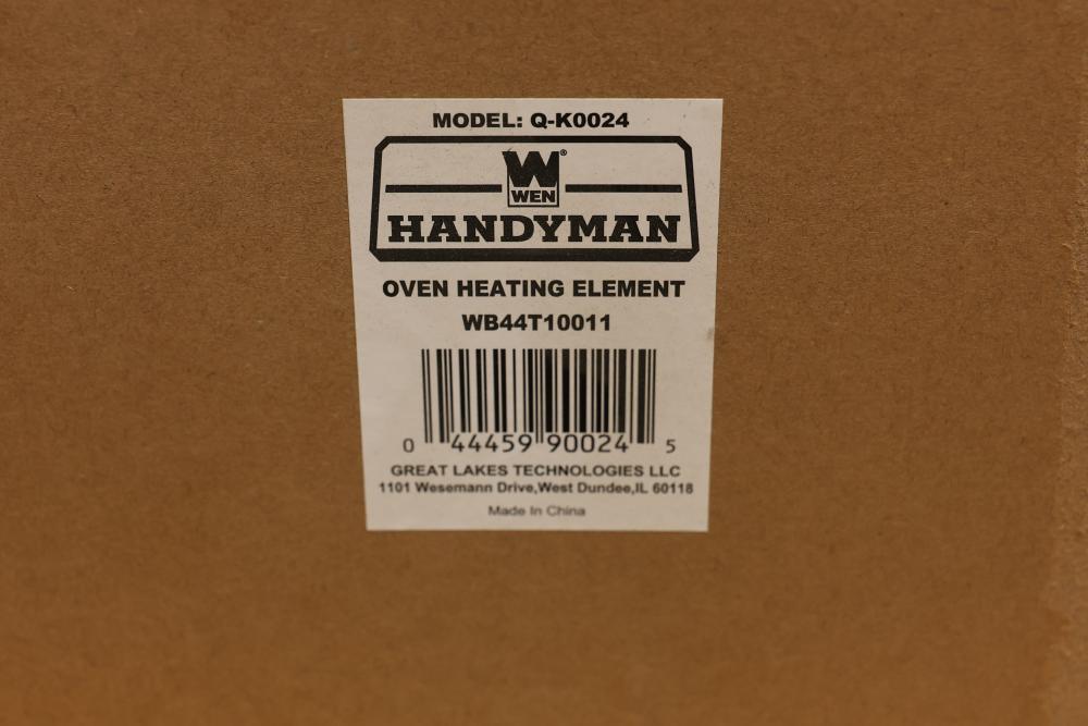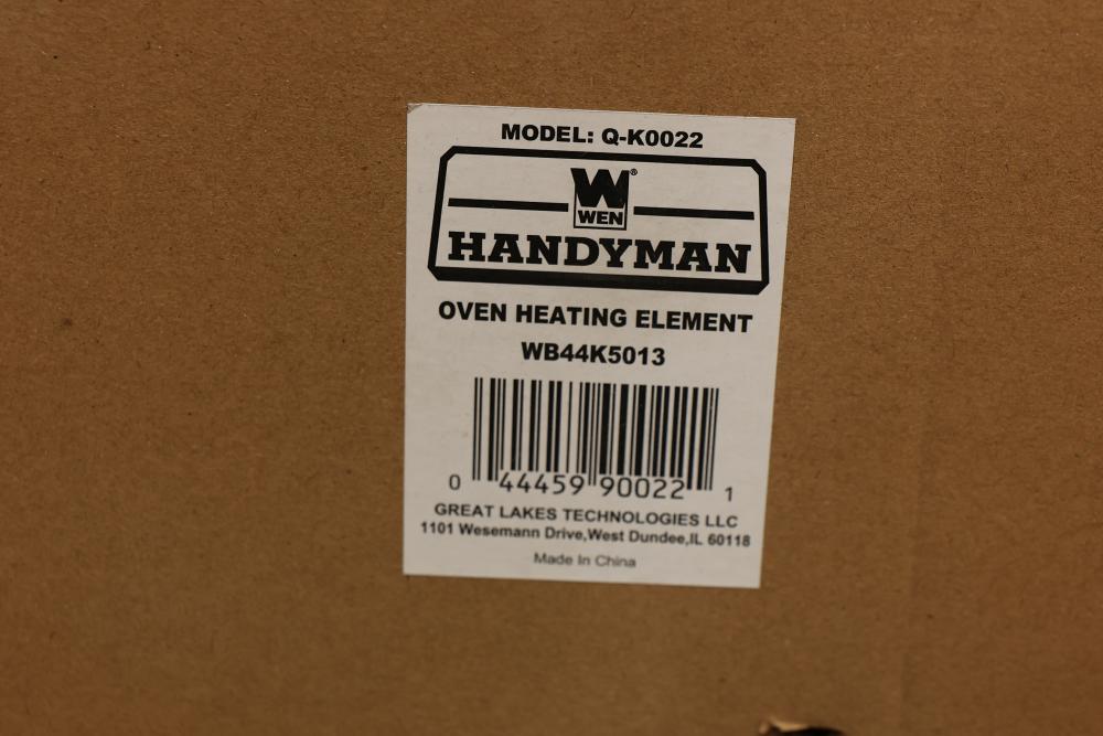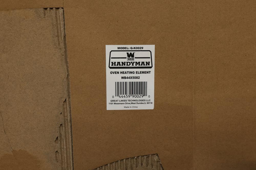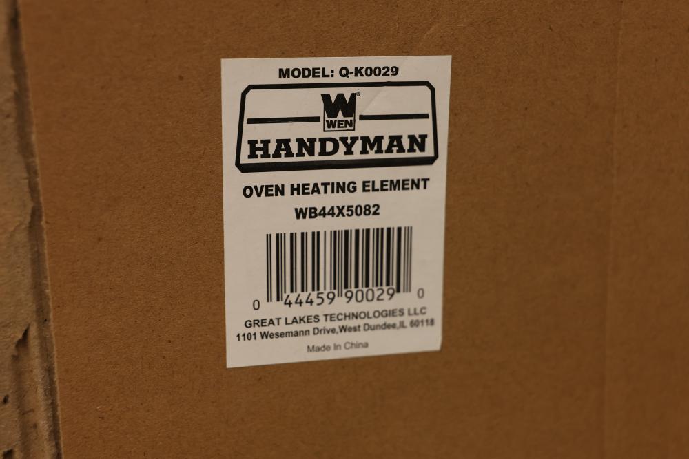 WEN Handyman Oven and Range Heating Elements and Burner, Models Q-K0029, Q-K0024, Q-K0022, and Q-K001. Includes a variety of oven heating elements with model numbers WB44K5082, WB44T10011, WB44K5013, and burner model WB16K10026. All items feature identifiable model marks and components visible in the included images. Pickup only.