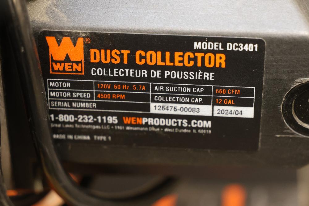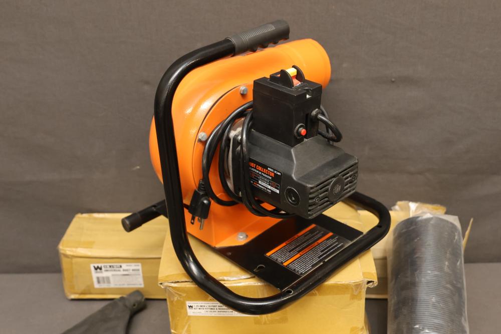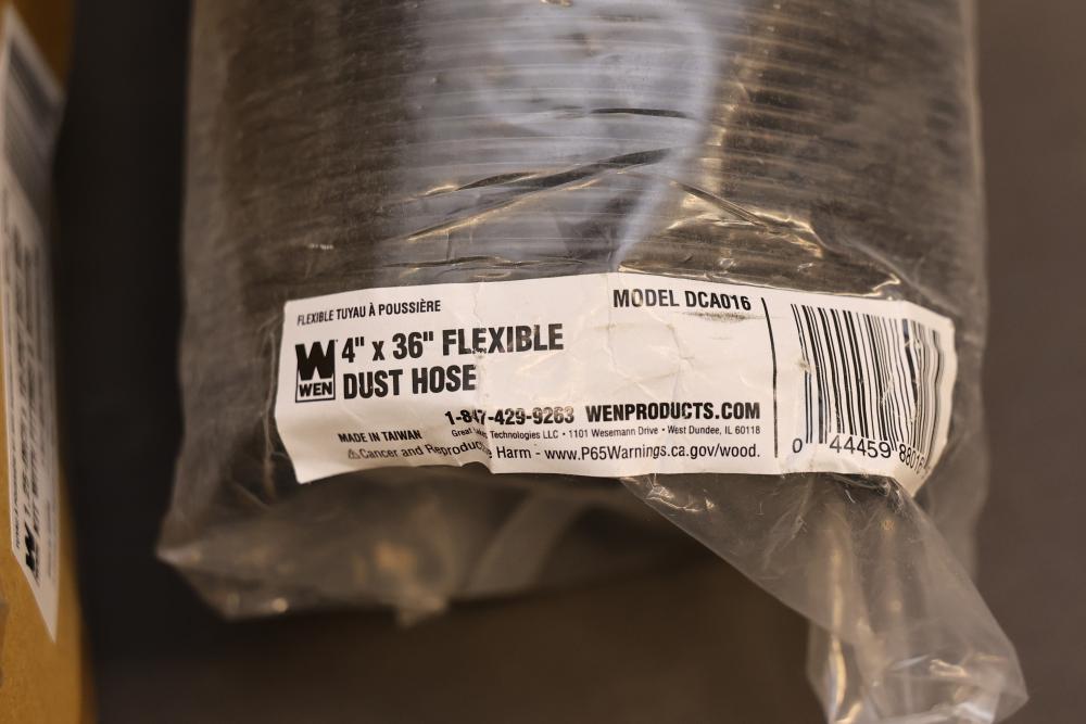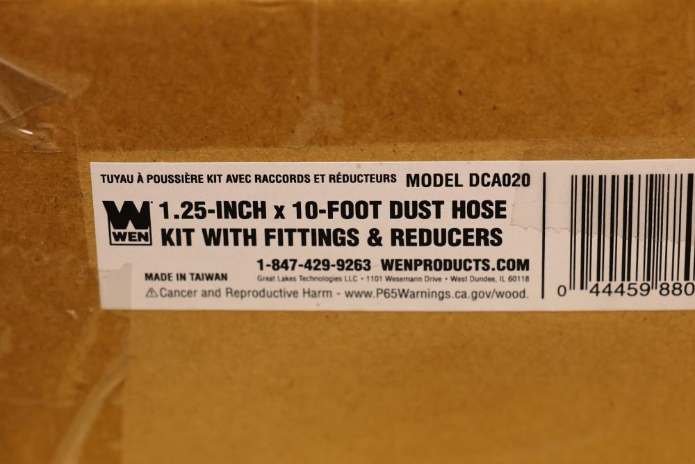 WEN DC3401 Dust Collector With Accessories and Hoses. This includes a functional Model DC3401 Dust Collector, Model 28200 - 4 in. x 10 ft. Universal Dust Hose, Model DCA020 - 1.25 in. x 10 ft. Dust Hose Kit with Fittings & Reducers, Model DCA016 - 4 in. x 36 in. Flexible Dust Hose, and Model DCA002 - 2-1/2 in. to 1-1/2 in. Reducer. Pickup only.