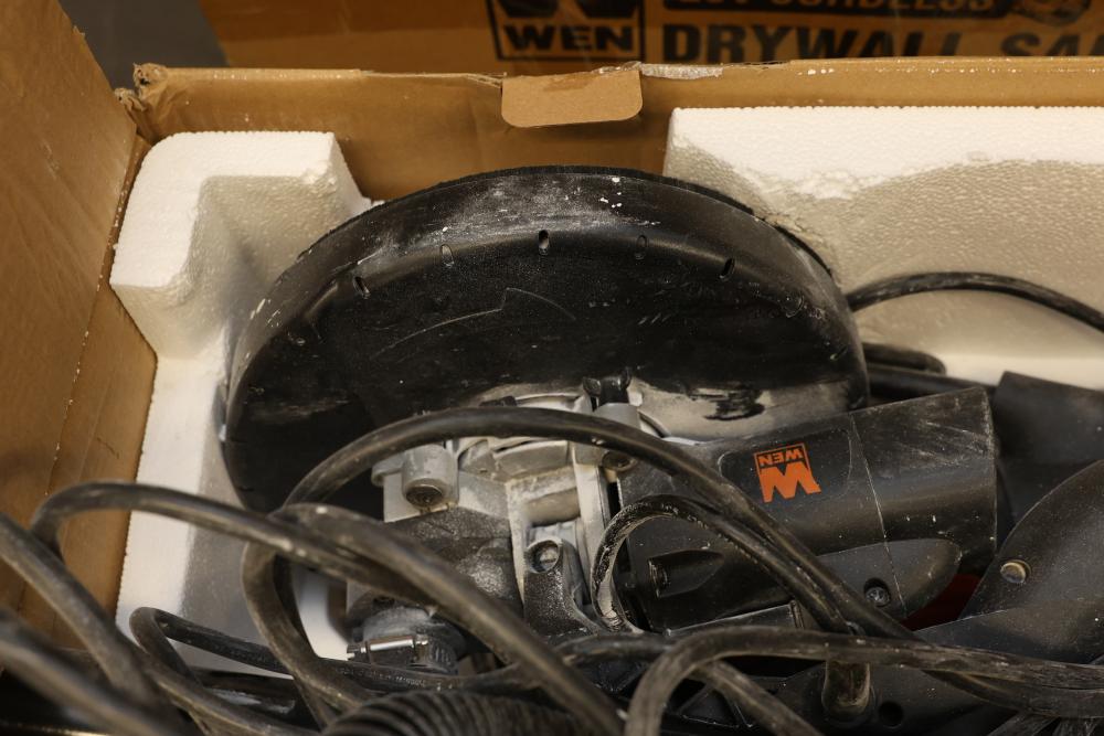 WEN Dual-Head Drywall Sanders Including Two DW5084 and One 20409. First DW5084 pictured runs, second DW5084 is nonoperational. Model 20409 is also nonoperational. Pickup only.