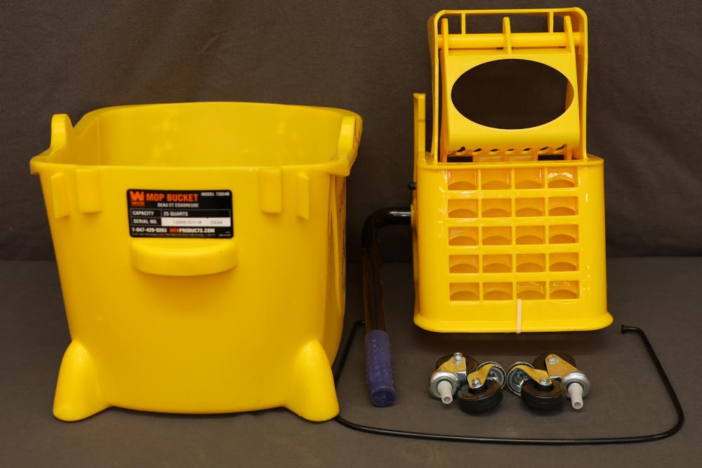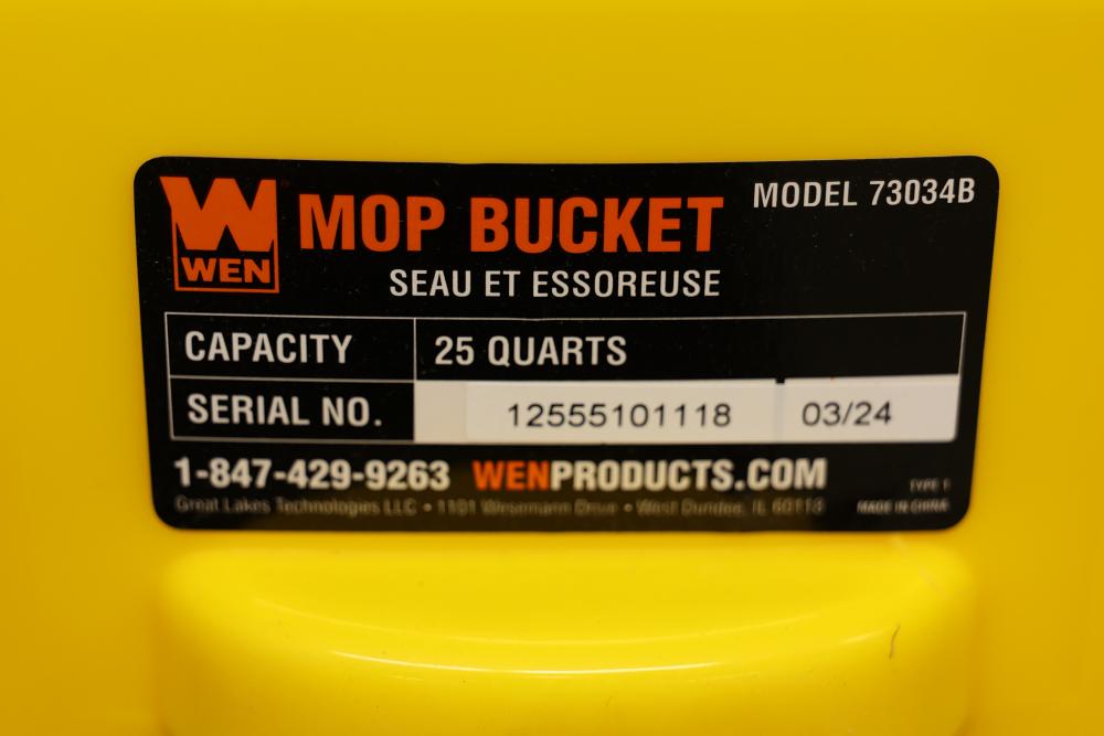 WEN Model 73034B 25-Quart Rolling Mop Bucket with Wringer. The item features 25-quart capacity and convenient wringing technology. The original packaging is included. Pickup only.