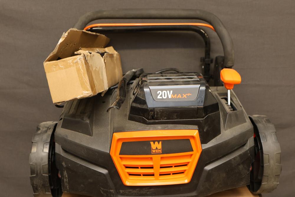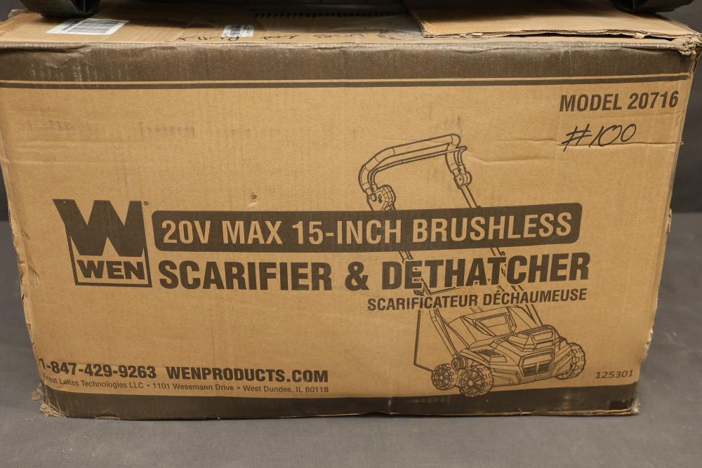 WEN 20V Max 15-Inch Brushless Scarifier & Dethatcher, Model 20716. 20716 unit is operational but missing parts. Other unit is nonoperational. Pickup only.