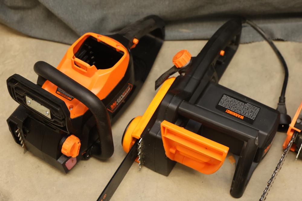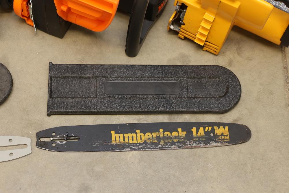 This listing includes WEN Chainsaws Model 4015, 4017, Lumberjack, and 40V 40417BT. WEN Chainsaws Model 4015 and 4017 are functional. Nonoperational models are Lumberjack and 40V 40417BT. See photos for damage. Pickup only.