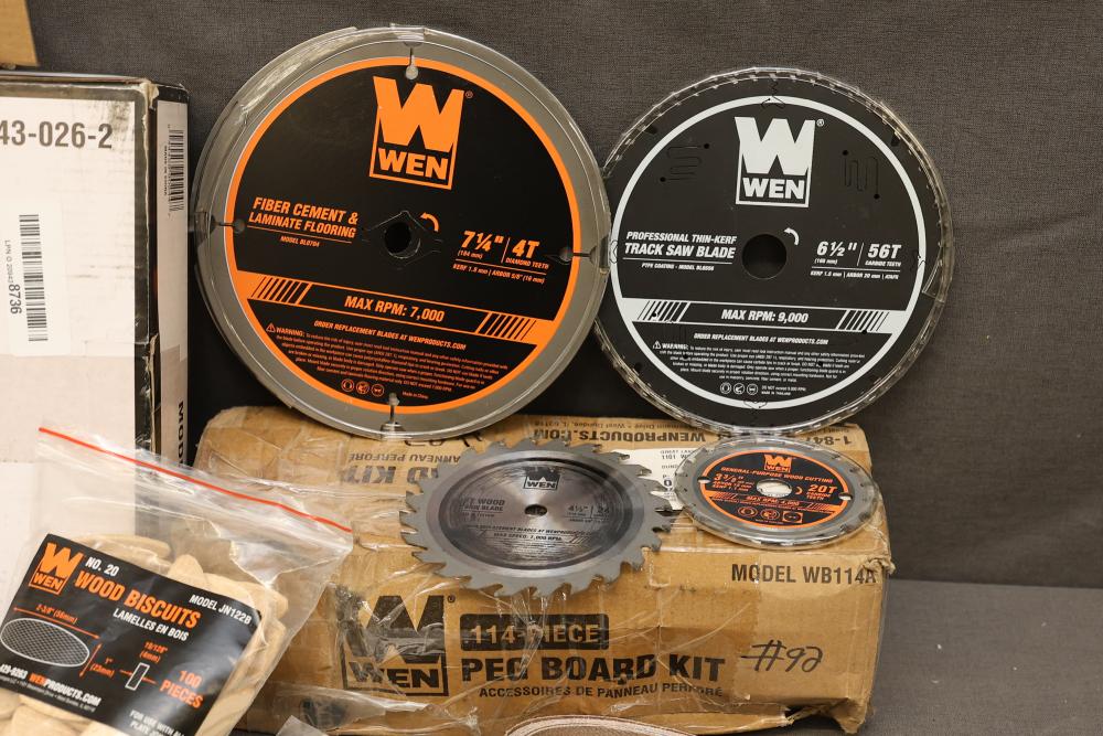 Items include WEN tools: 4800 watt portable inverter generator; 15" dethatcher/scarifier; dual fuel generator; 8" five-speed drill press; 500lb. capacity service cart; 20V Max cordless 18 gauge brad nailer; 10" random orbit waxer; variable speed fiber-cement shear; wood cutting saw blades; handman dryer elements/accessories; sanding sleeves/discs/belts; 4 3/8" electric hand planer; handyman drip pans; buffing pads; 14" cut-off chop saw; clamps; oscillating belt/spindle sander; weatherproof covers for generators/pressure washers; rotary tool kits & more. Items are located in Pleasant Valley, NY.