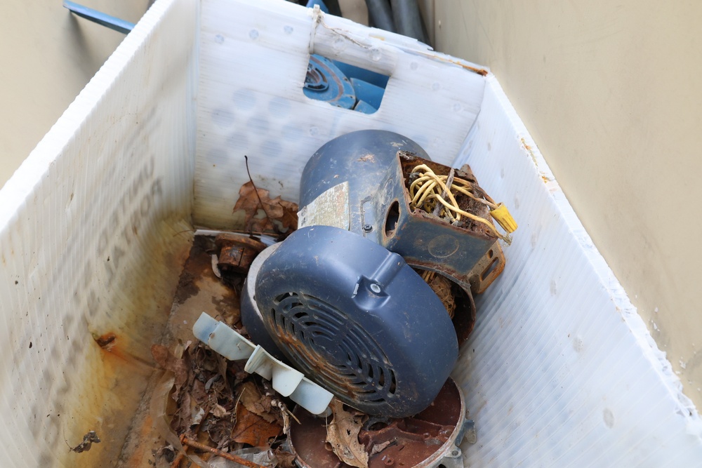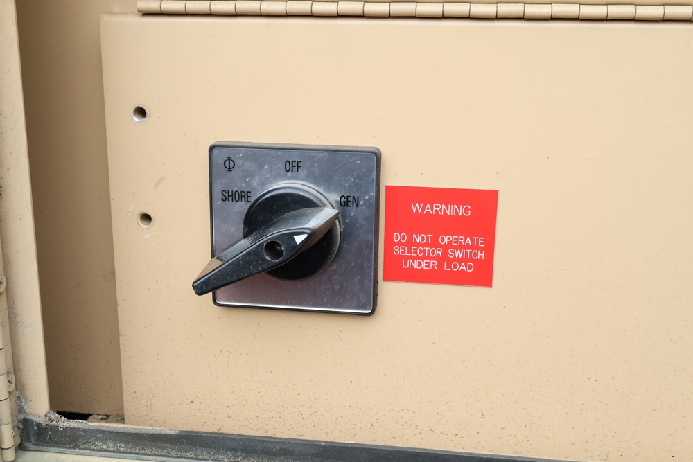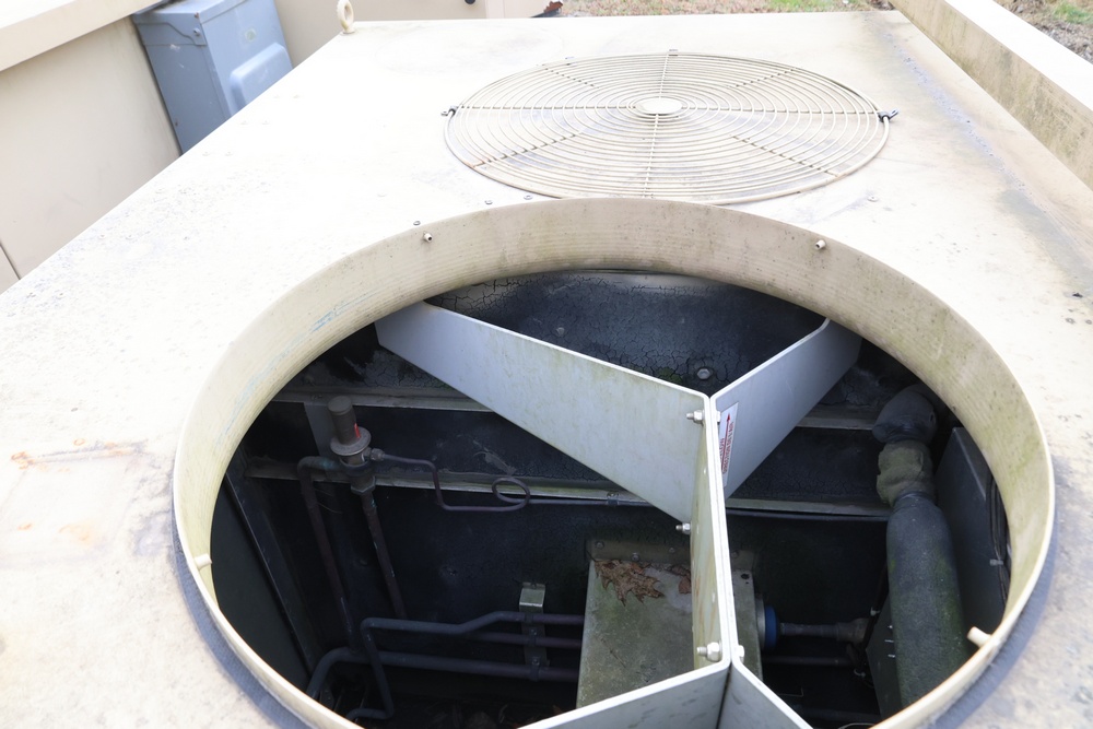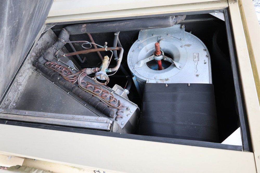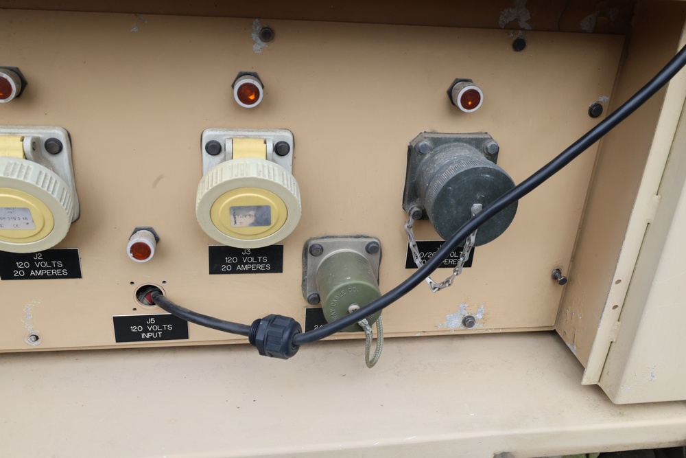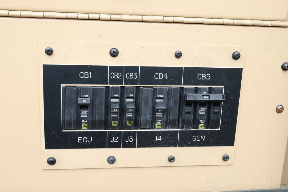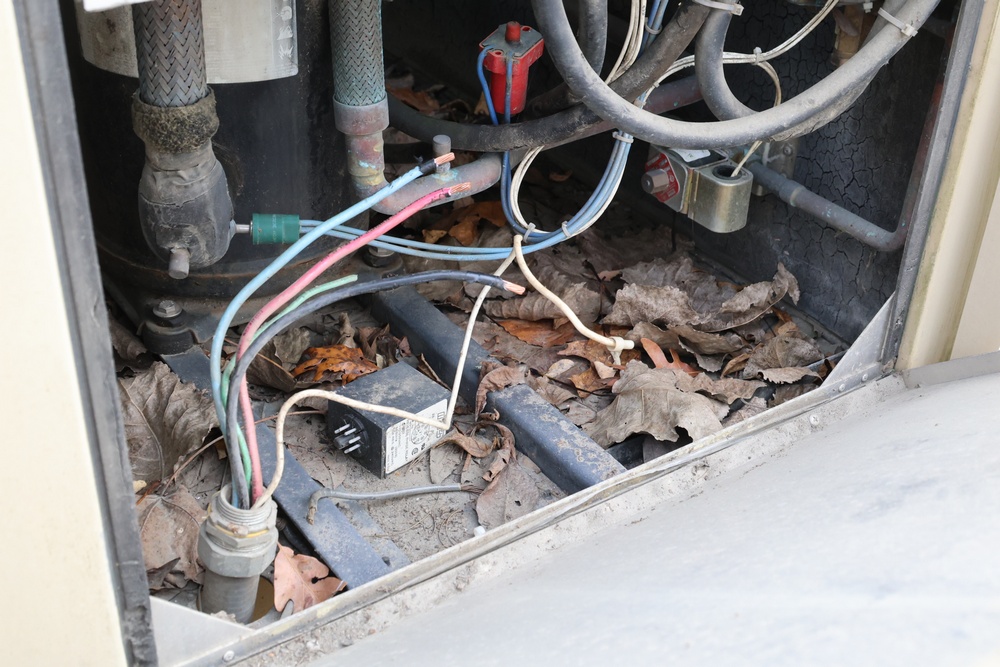 DHS Systems trailer-mounted environmental control unit with United CoolAir DHS-8HT air-conditioning system (96,000 BTU cooling / 45,900 BTU heating), and onboard 30 KW diesel generator, showing 127.4 hours. Seller reports: generator runs but motor on cooling fan does not (see photos).