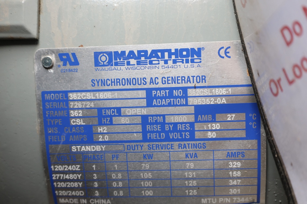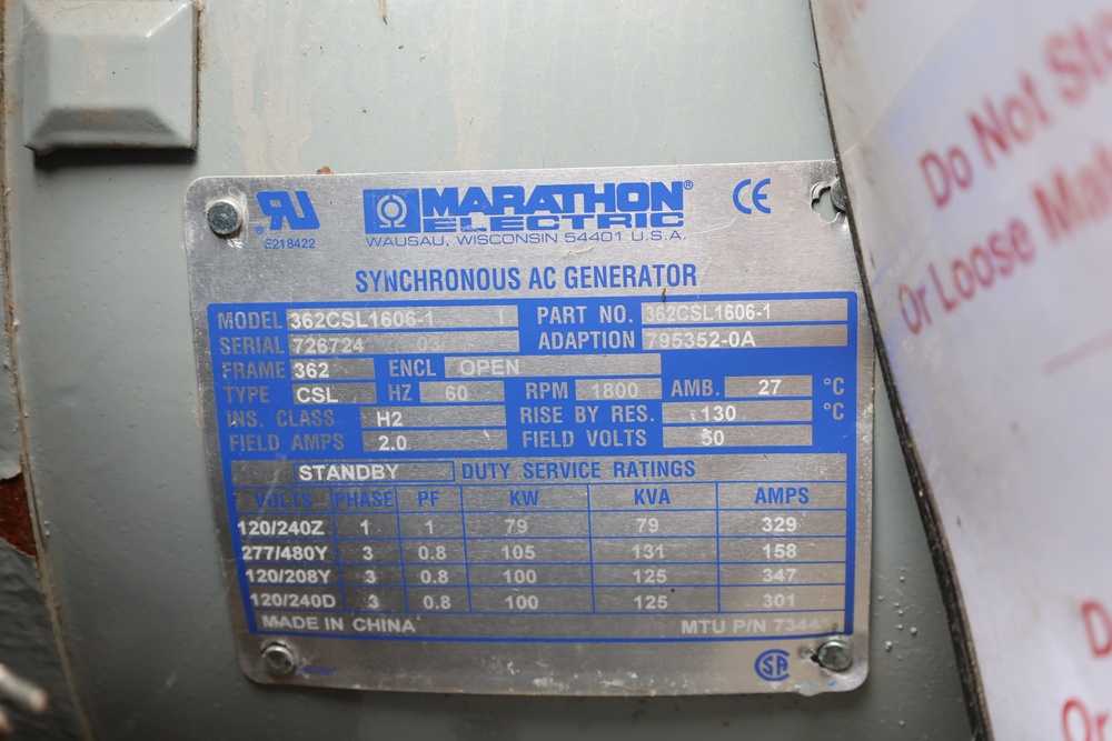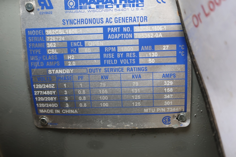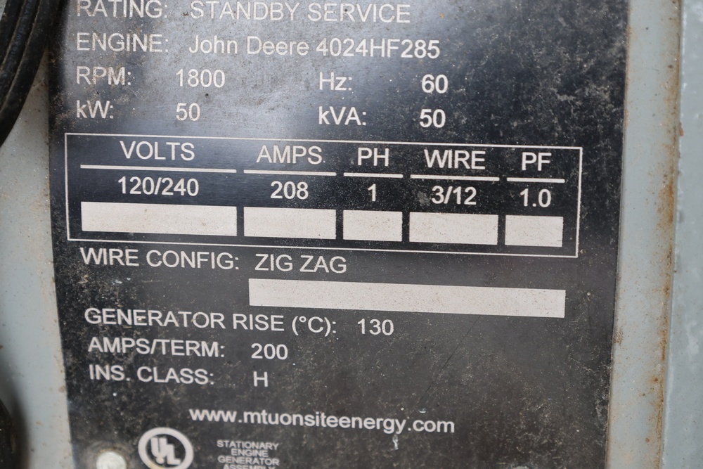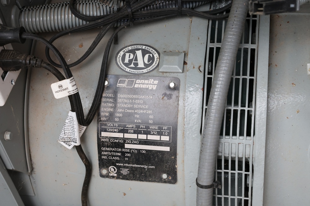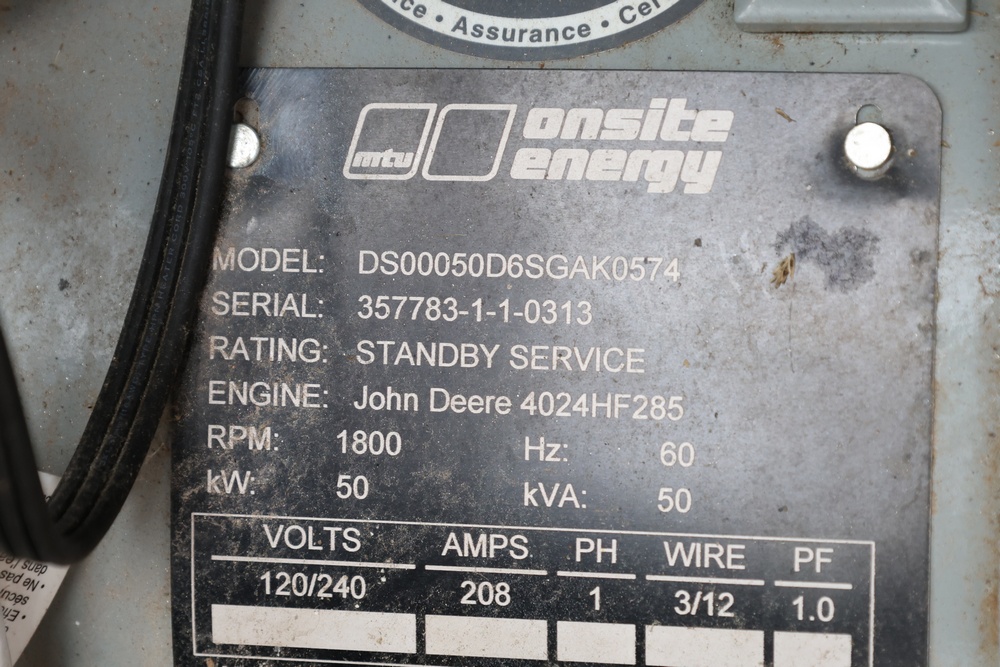 MTU Onsite Energy 50 KW generator, model DS00050D6SGAK0574, serial 357783-1-1-0313. Seller reports: approx. 170 hours.