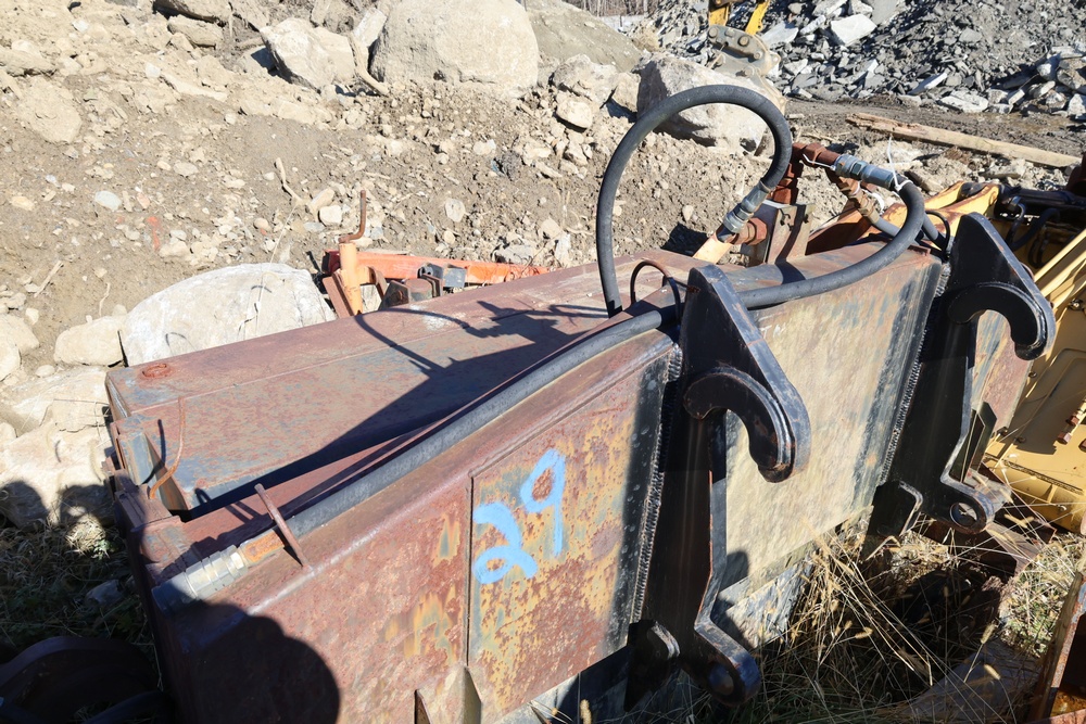 Sweeper attachment with JRB quick connector. Was previously used with a John Deere TC54 3 yard wheel loader.