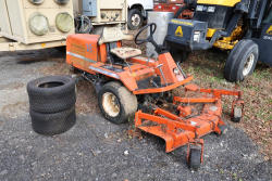 Kubota F2400 front-mount mower with three spare turf tires, serial number not visible.