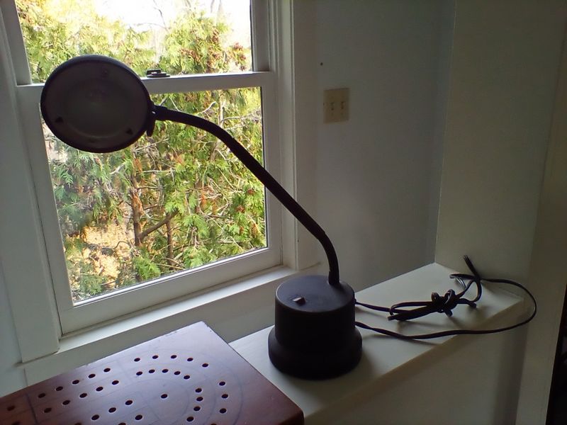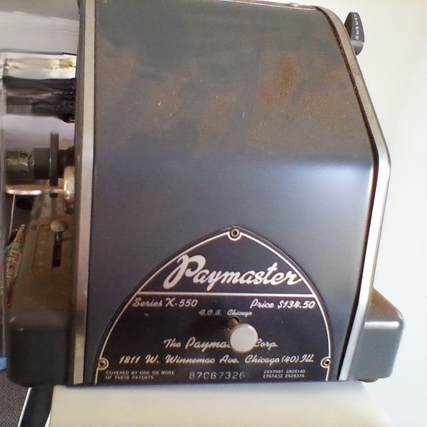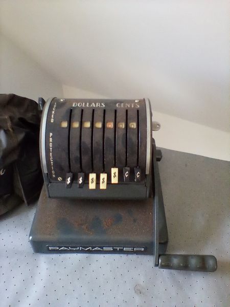 Antique & Vintage Collectibles. Paymaster antique adding machine, series x550 with cover; oversized cribbage board (no pegs); modern metal desk lamp. Loc on 3rd fl.