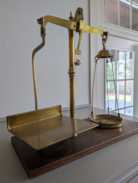 items include Beatrix Potter collectibles; Paymaster antique adding machine, series x550 with cover; antique iron bed; ladder back chairs; Avakian Bros. antique area rug; set of Hitchcock-style side chairs; Degrave & Co. 1917 antique brass scale; antique wicker bench; dog washing station; Graco Pack n' Playu; exercise machines: Soloflex & BowFlex TreadClimber; vintage bow front dresser; fireplace tools; Theodore Haviland "Rosalinde" dish set; Weber charcoal grill; Lenox Holiday plate & more. Items are located in Madison, NY.