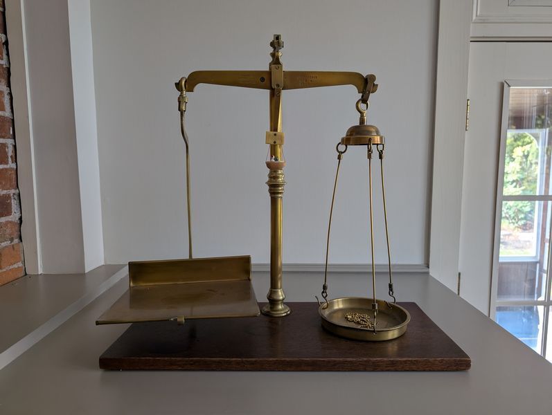 Antique Brass Scale. Degrave & Co. 1917 antique scale, 2'Wx23"H.