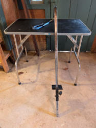 Dog Washing Station, Crates. Folding dog washing table with attach, 3'Wx2'Dx 32"H; three dog crates: (1) lg, (2) med. Loc in basement and garage walk up.