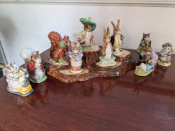 Beatrix Potter Collectibles. Eleven pieces including porcelain display, 1'W; ten porcelain statues of animals (see photos ea. type and maker's mark). Loc on 3rd fl.