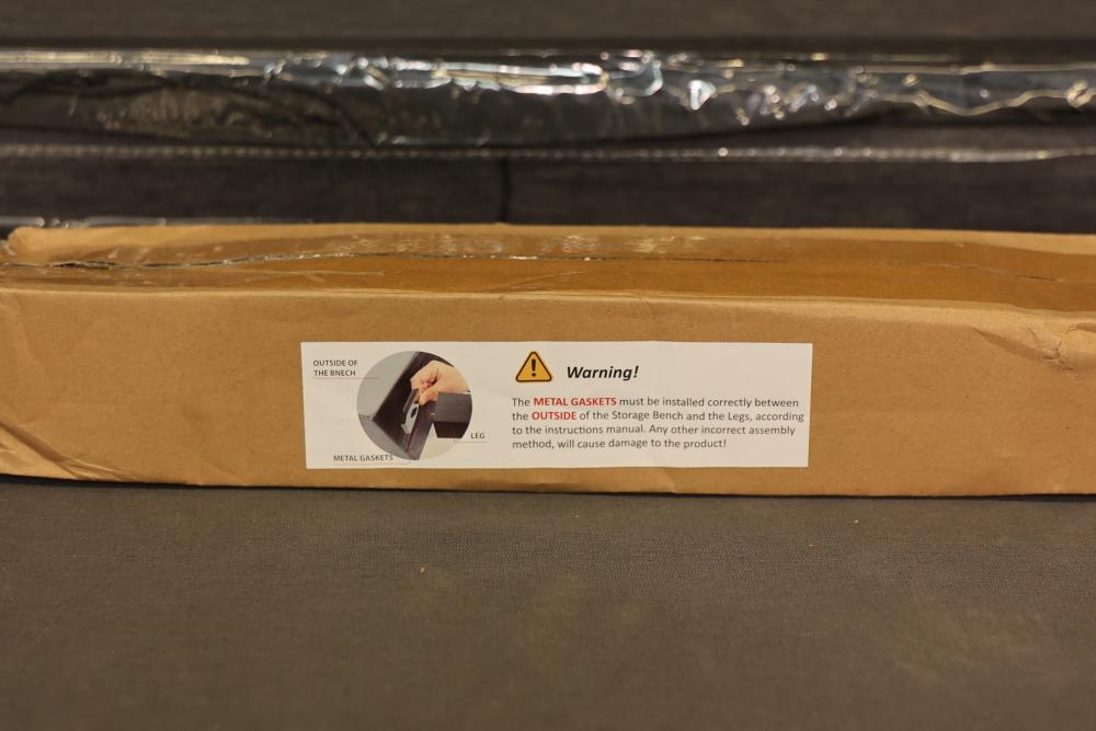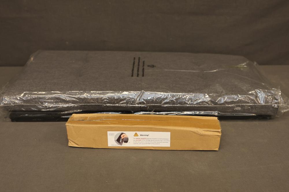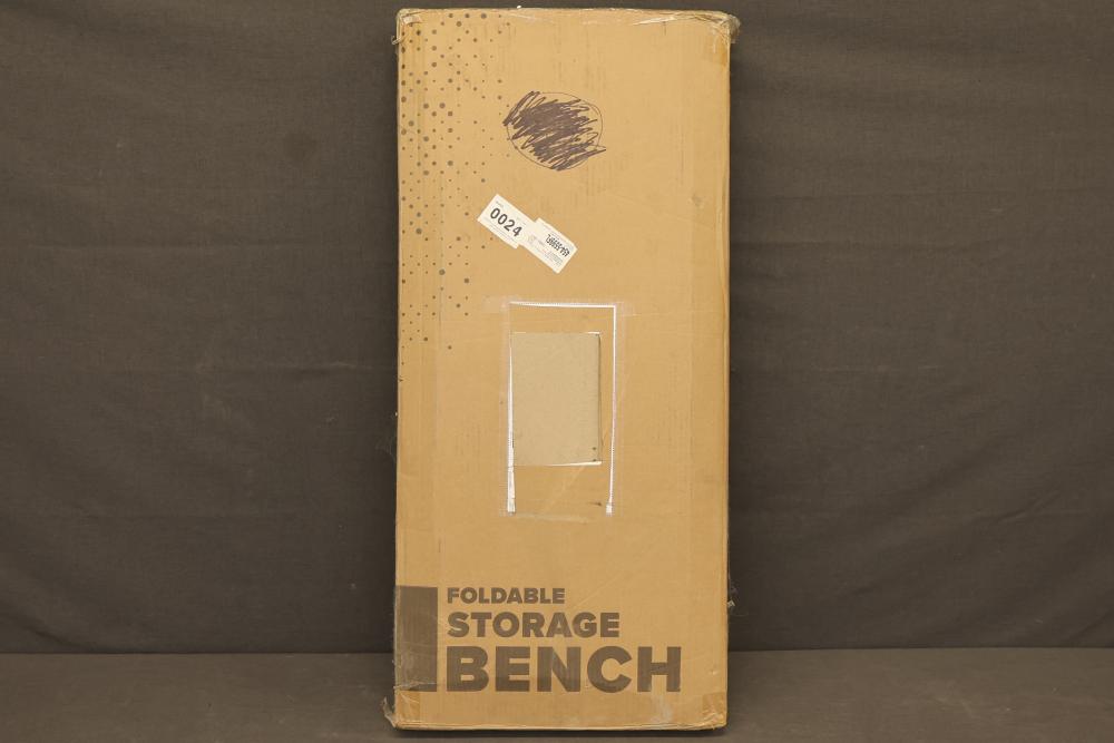 Storagebud Storage Ottoman Bench with Bins. Features a foldable design with a padded lid for convenience and comfort. Includes bins for additional storage options. Packaged in original box with protective wrapping. Condition appears unused. Pickup only.