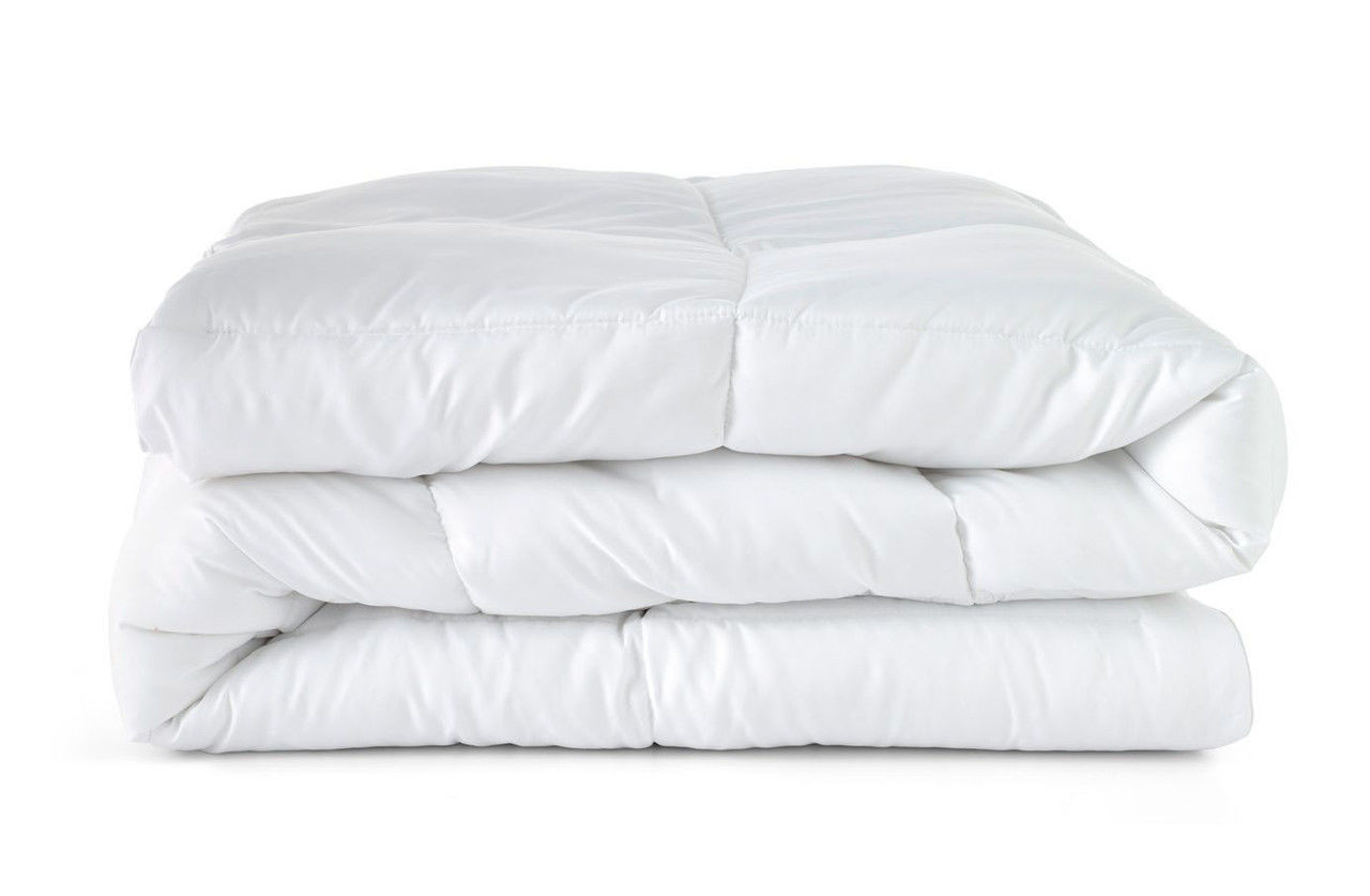 Goto Bedding Classic Down Alternative Comforter King Size in White. Designed with a brushed microfiber shell, polyester fill, and box stitching for long-lasting durability. Hypoallergenic material is soft, breathable, and suitable for all seasons. Comforter size measures 104 inches by 90 inches. Machine washable for easy care. Pickup only.