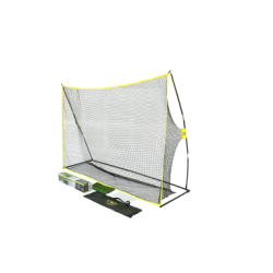 Athletic Works Golf Practice Net with Hitting Mat. Includes a large 10 ft x 7 ft hitting area made of durable netting, fiberglass upright poles, steel base frame, turf mat, six stakes, and carrying bag. Ideal for practicing golf, baseball, or football. Features high visibility trim for easy targeting. Pickup only.