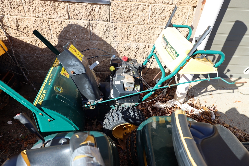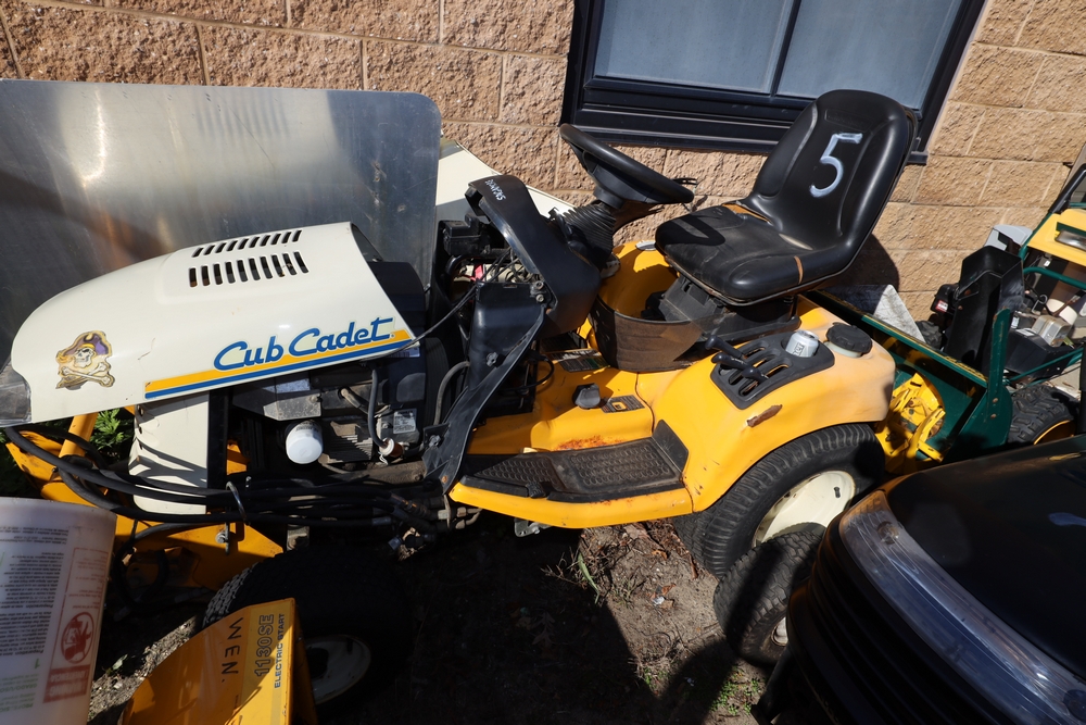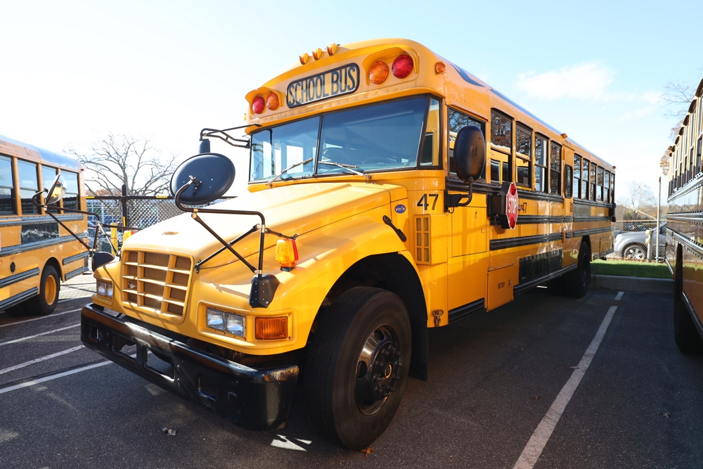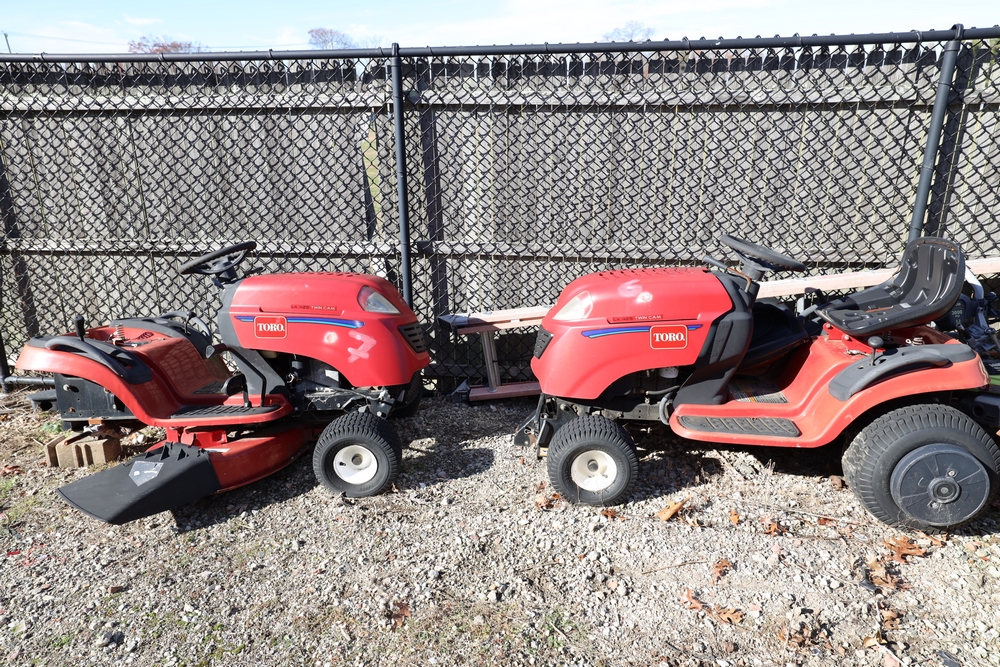 Items include 2007 Blue Bird Vision school bus; Troy-Bilt snow blower; 2011 Chevrolet Express 4500 school bus; Craftsman, Cub Cadet & Toro riding mowers; Traulsen two-door freezer & Motion Fitness/Positive Gaming student dance system dance game boards. Items are located in Ronkonkoma, NY.