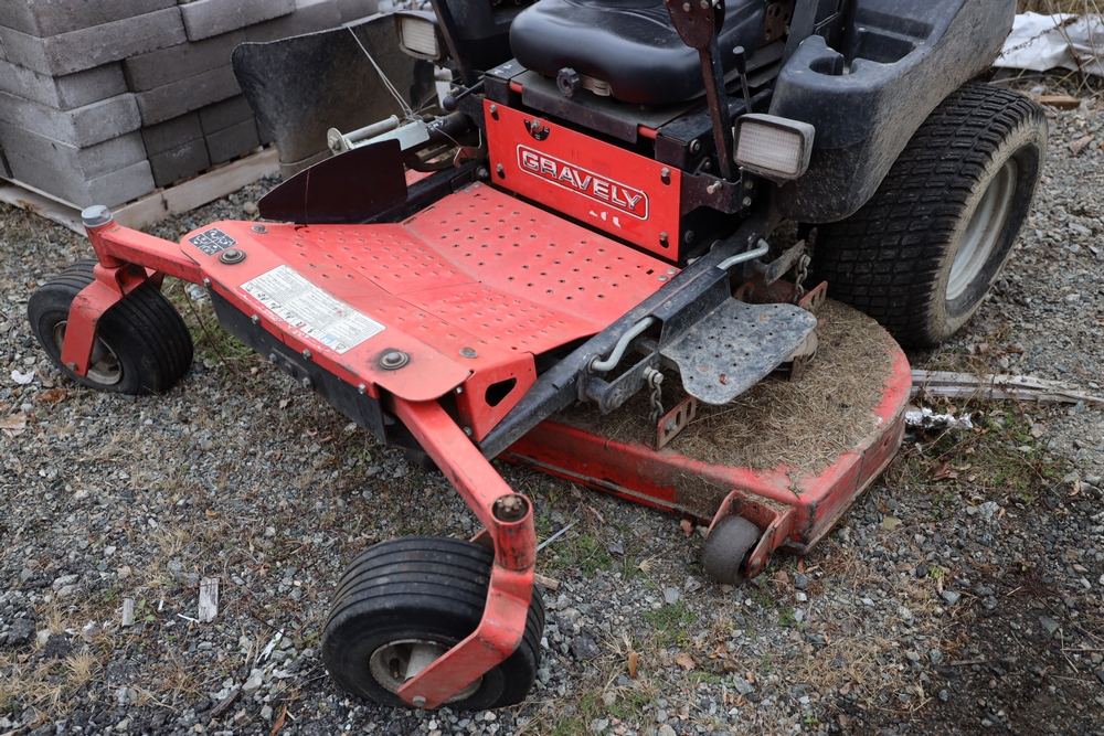 2005 Gravely 60" Deck Zero Turn 27 HP Kawasaki engine. SN: 260Z992073/000112. Seller reports: engine is bad.