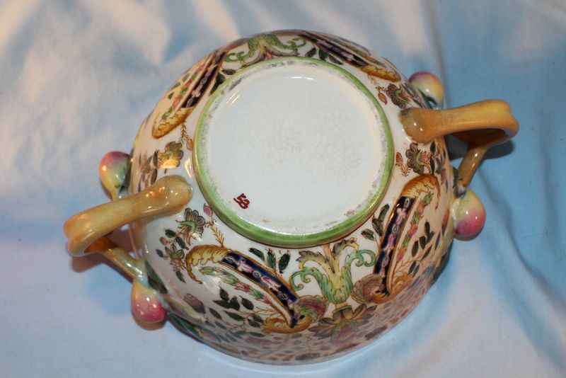 Porcelain and glass items including 5.5"T Chinese export pottery pot with lid; a 9"T Fenton art glass basket; a 7.5"T Royal Doulton "The Sleuth" Toby mug #6631; a Tiffany 5"T crytal brandy glass with box; 6 porcelain Czech miniature houses.