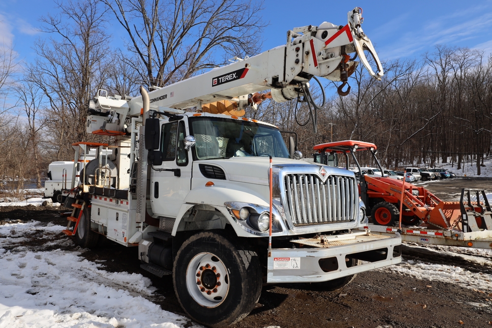 2014 International WorkStar 7400 Terex Commander Digger Truck. VIN: 1HTWDAZR6EJ761643. Body: Chassis 2D. Engine: 9.3L I6 CRDI Diesel. Allison Transmission. Equipped with Terex Commander C5050 Digger Derrick. Odometer reading: 48606, Hours reading: 8588. Seller reports: Age Condition, mileage Title & key available. Trailer not included.