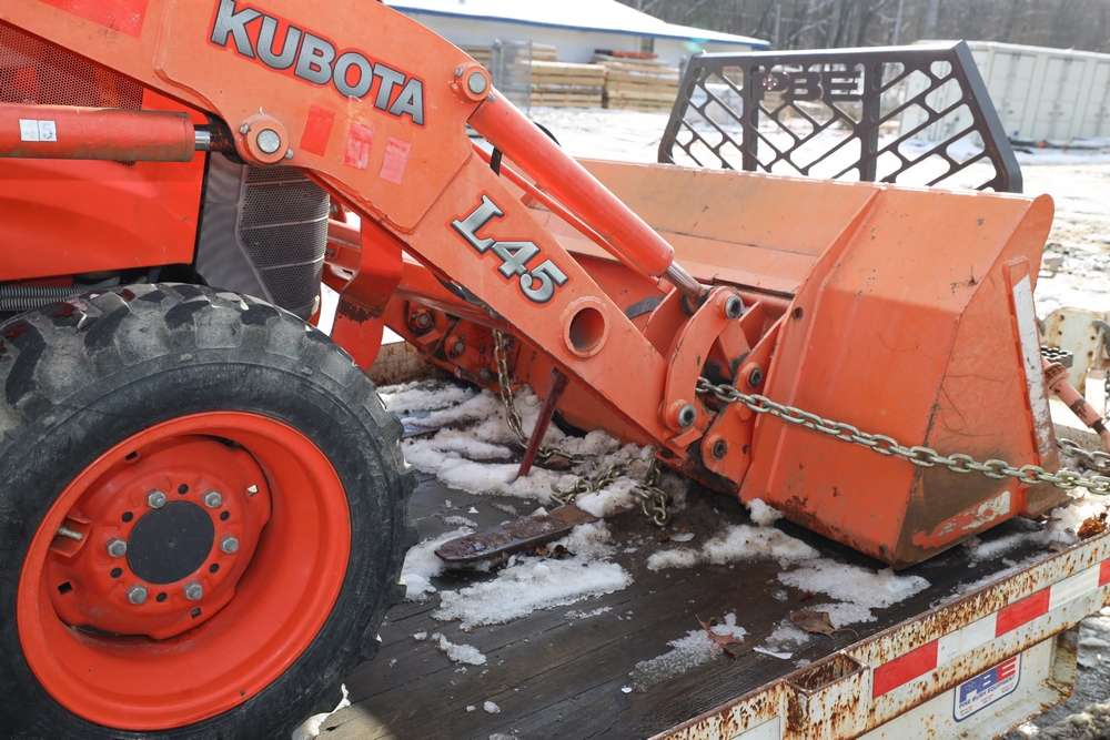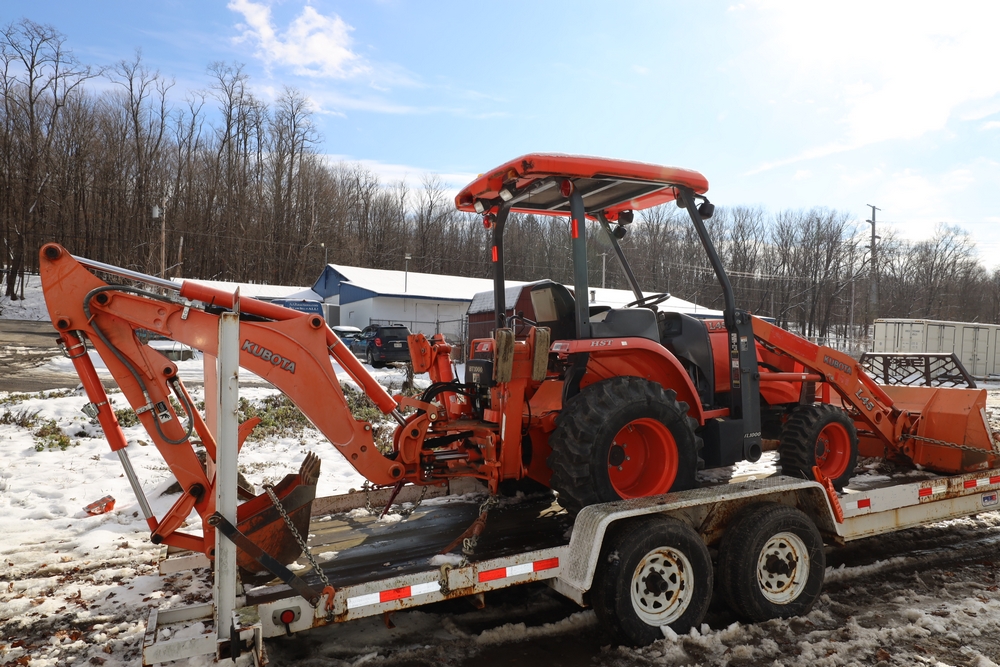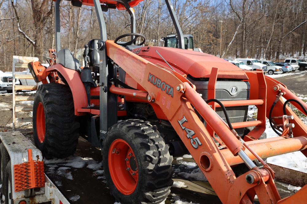 2013 Kubota L45 Tractor Loader with BT100 Bakhoe attachment. SN: 51530. Hours reading: 416.2. Seller reports: Age Condition, Key available.