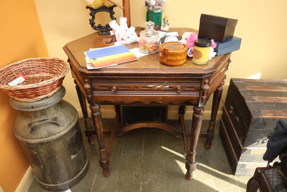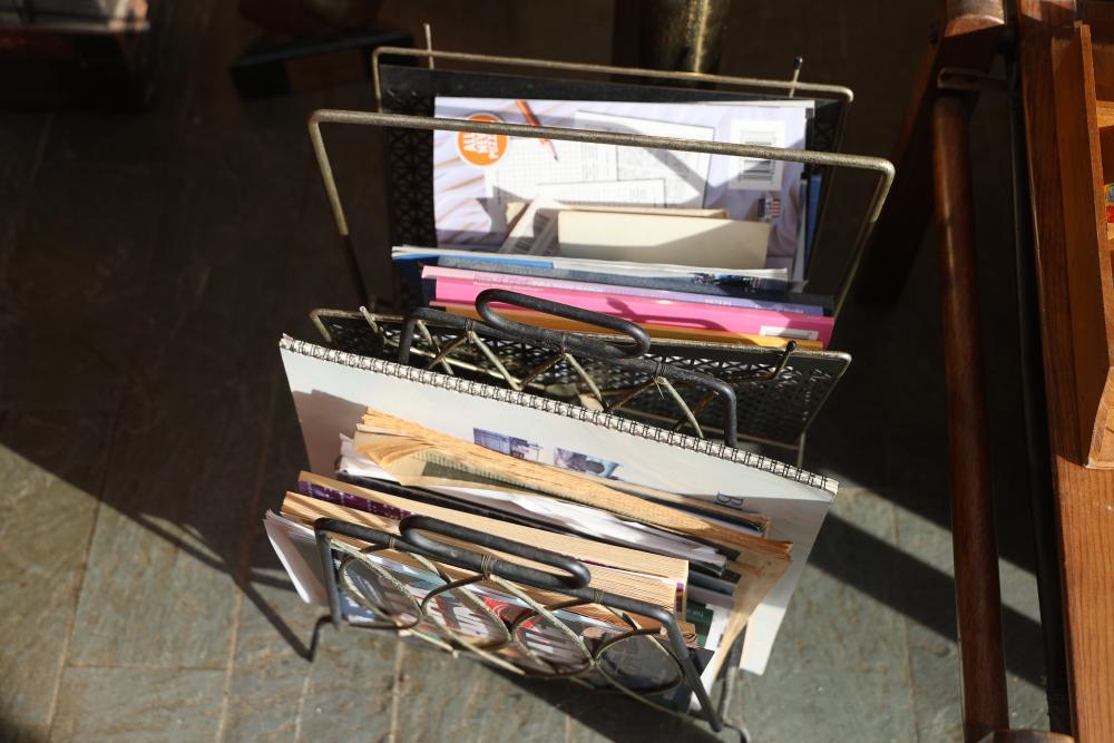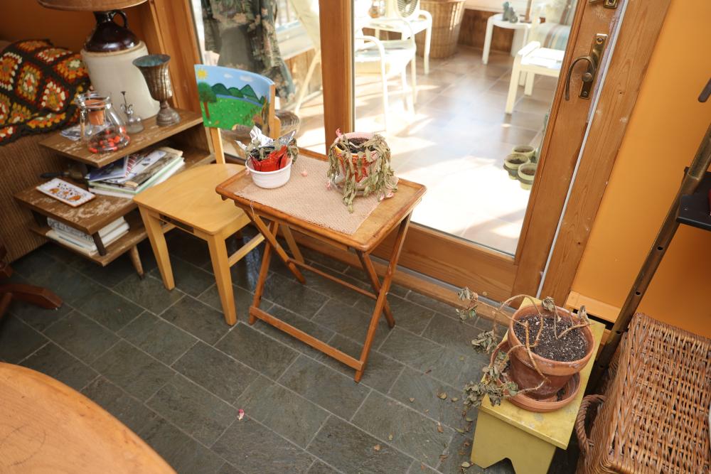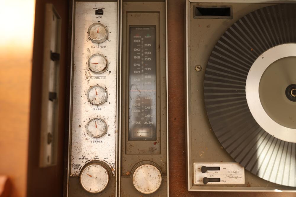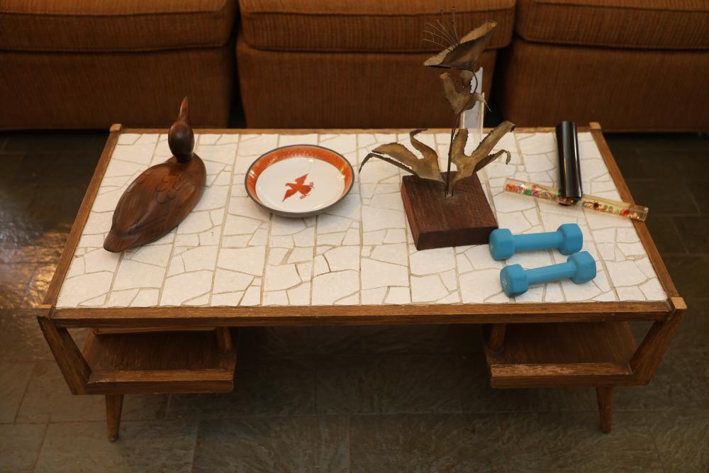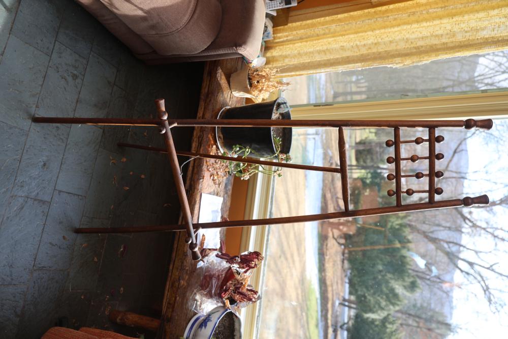 Living room furniture and home decor, including Viva Lift Power Chair Model HSW310-B-VA-1 (seller reports functional when last used), two upholstered cushioned lounge chairs, a three-drawer wooden chest of drawers with metal pulls, a three-seat upholstered cushioned couch with removable cushions, rocking chairs (one with metal springs), a Sears Solid State by Silvertone record cabinet (functionality unknown), a Singer sewing table with sewing machine removed, a Sony KDL-32S5100 LCD TV, an art easel, Etain Pur Tiel Holland pewter, two three-tier wooden end tables, two lamps (one made from a large jug), two abacuses, an octagon-shaped wooden table, various home decor, figurines, mugs, vases, and miscellaneous small items. Buyer is responsible for all help and materials necessary for safe and proper removal and must take all. Items located on first floor, no stairs. Pickup only.