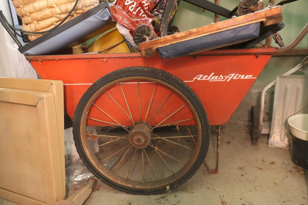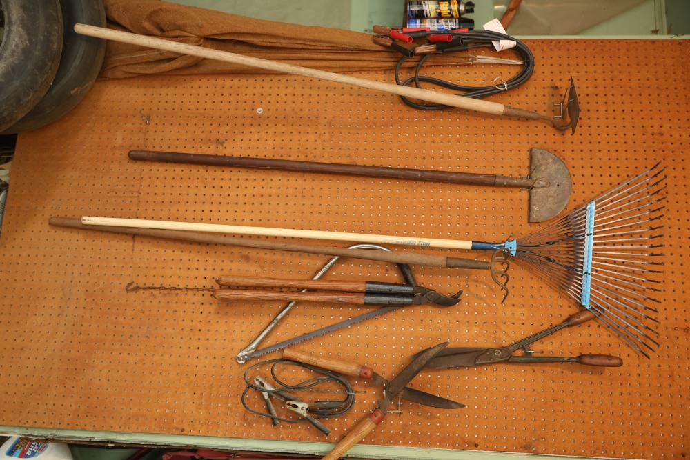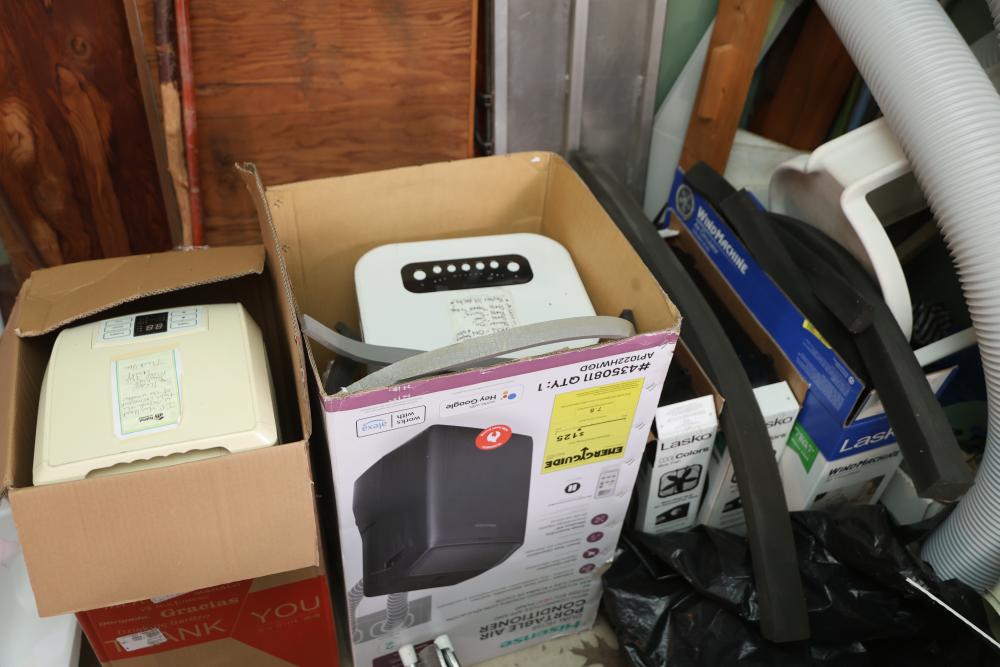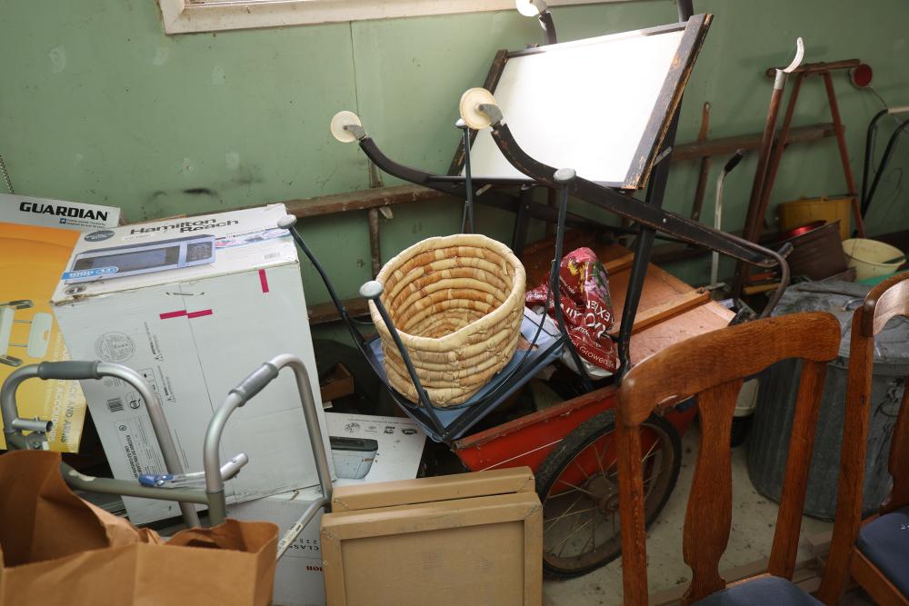 Tools, Vitamaster 80C Exercise Bike, Portable Air Conditioners, Fans, Gardening Supplies, contents of garage incl; garden tools, shovels, rakes, planters, an Atlas Aire cart, a variety of spray and cleaning products, license plates, plastic containers, buckets, water bottles, wheelchair units, etc. Does not include items from other lots. Buyer is responsible for all help and materials necessary for safe and proper removal. Buyer must take all. Items located on first floor, no stairs. Pickup only.