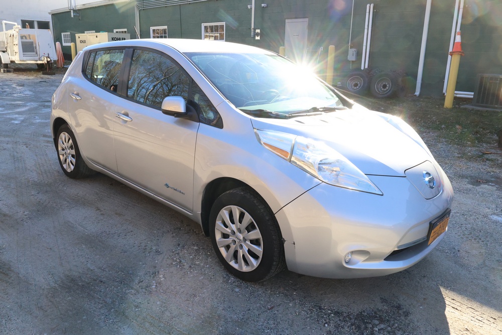 Items include 2017 Nissan Leaf SV electric hatchback; Sewer Equipment Co. of America model 747-SP2000 trailer jet & electric-powered Genie personnel lift on a rolling base. Items are located in Mount Kisco, NY.