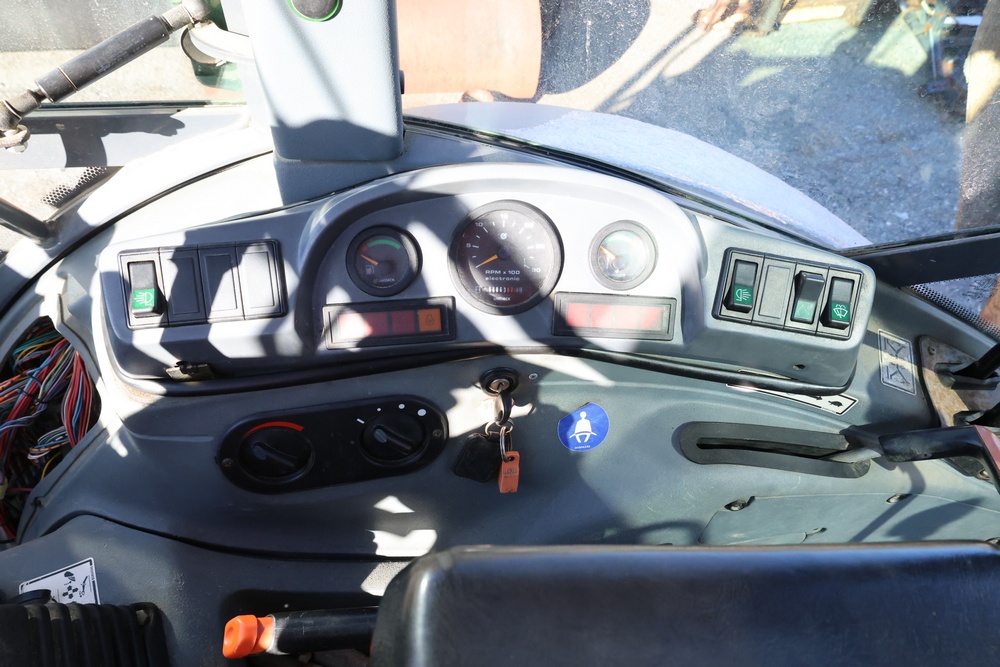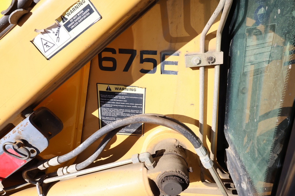 1999 New Holland 675E loader backhoe. Unit Serial Number: 031020453. Model: 675E-699031700. Engine: PD854821. Transmission: 15667F998484. 4WD axle: 004748. Rear axle: 9F10-20. Odometer reading: 4,063 hours. Features include enclosed cab, front loader bucket, rear backhoe with hydraulic outriggers, and 4-wheel drive configuration. This lot includes assorted filters (not photographed). Seller reports: Backhoe does not run or drive. Seller replaced started and battery, backhoe started once and now just cranks slowly (with charged battery), hydraulic cylinders rebuilt.