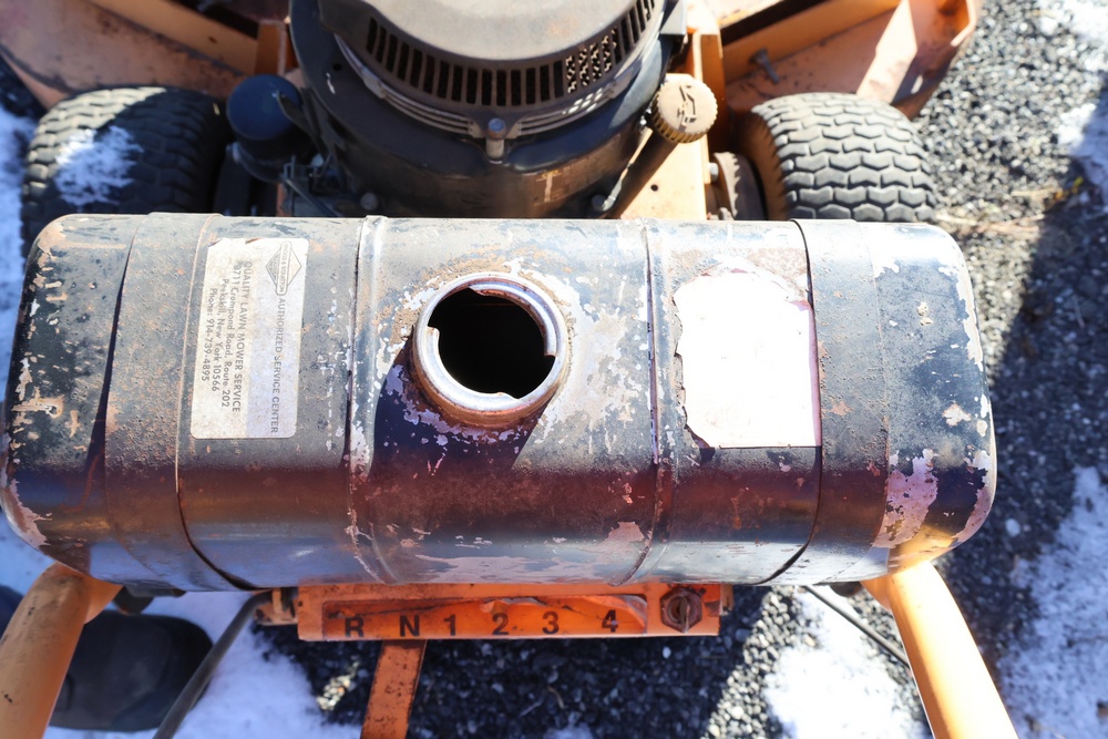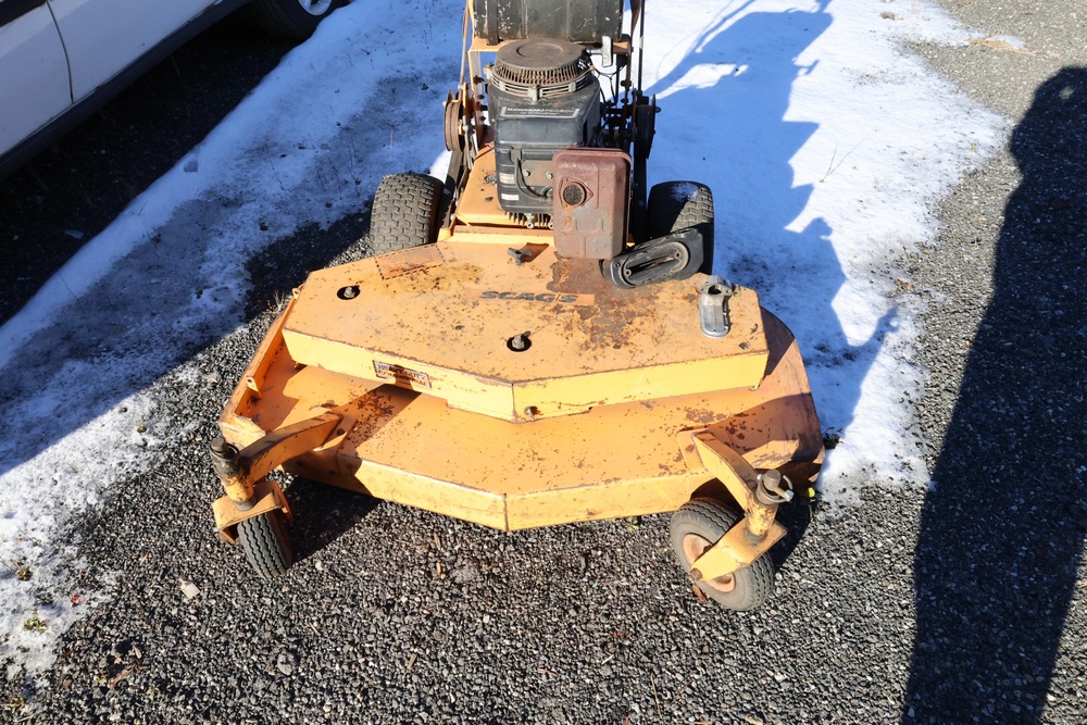 Scag SW48-13K walk-behind mower, serial 2265. Seller reports: engine needs to be replaced, the deck and gas tank are not rotted.