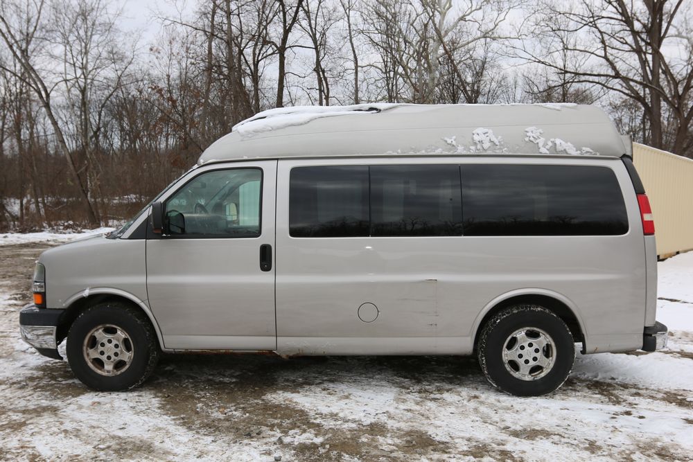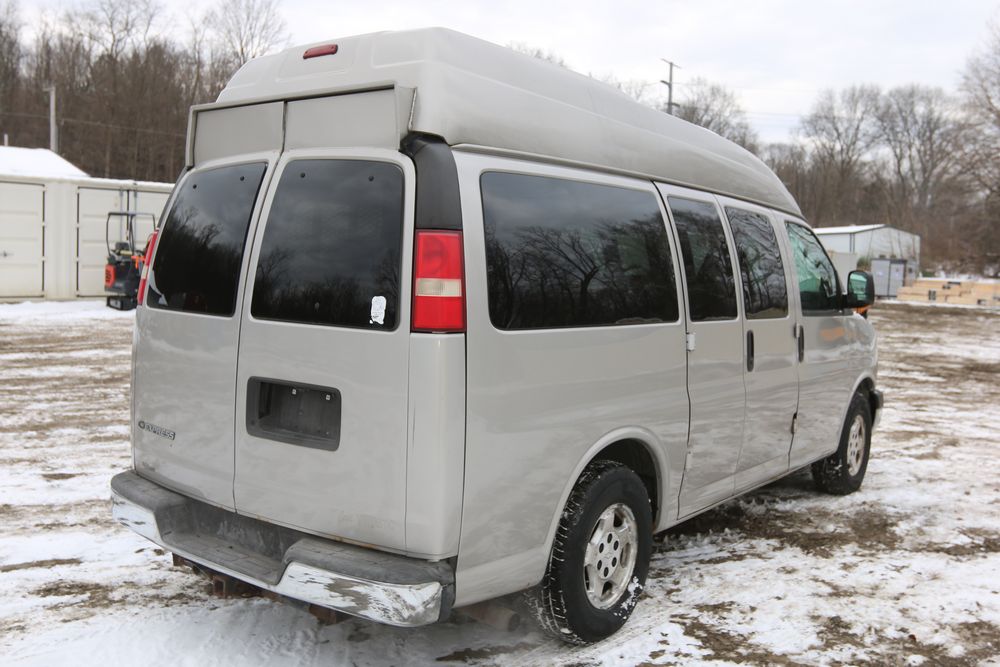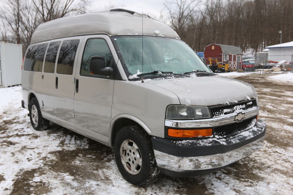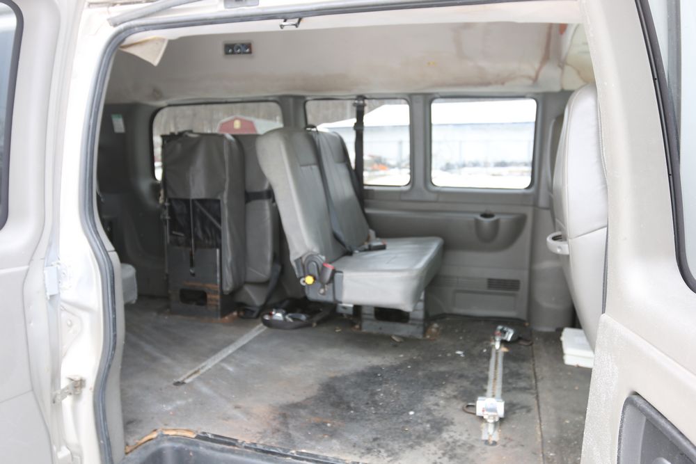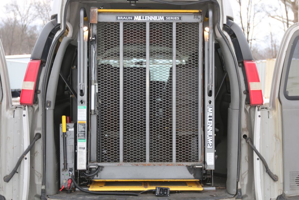 2008 Chevrolet Express 1500 with Braun wheelchair lift, 5.3L V8 OHV 16V engine, VIN# 1GNFH154X81170917, odometer reading: 100,456. Has tow hitch, cruise control, power windows/mirrors/locks. Wheelchair lift broken. Runs, drives. Has keys, title & bill of sale.