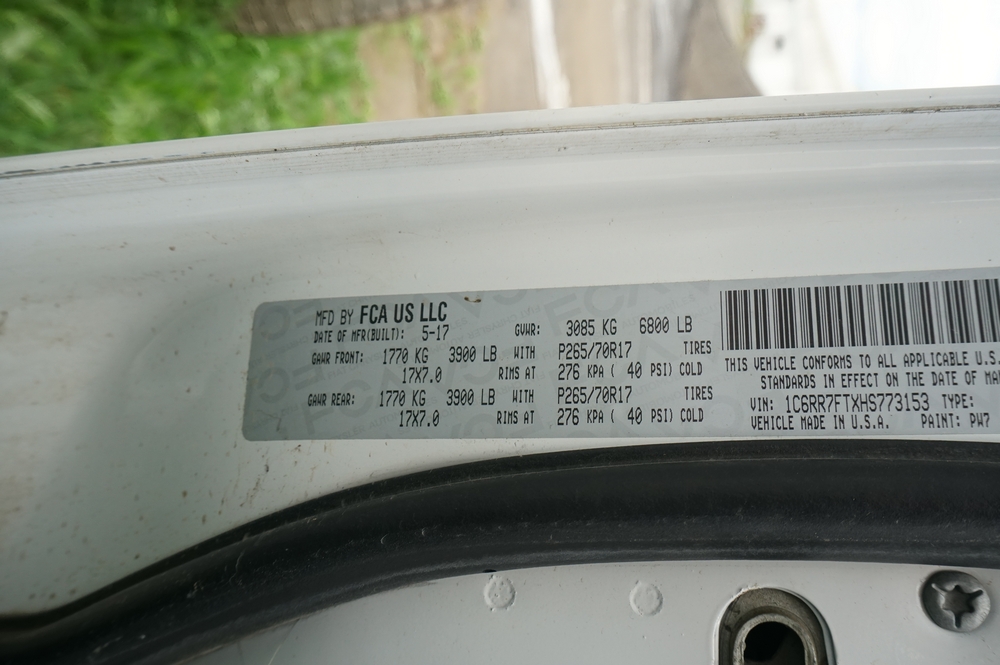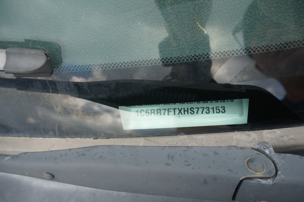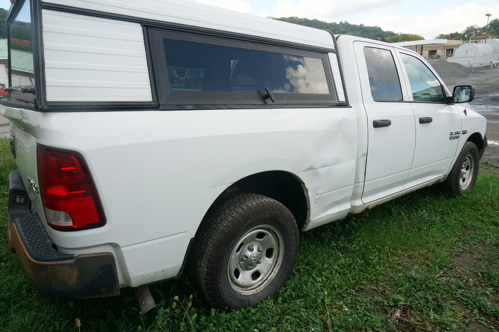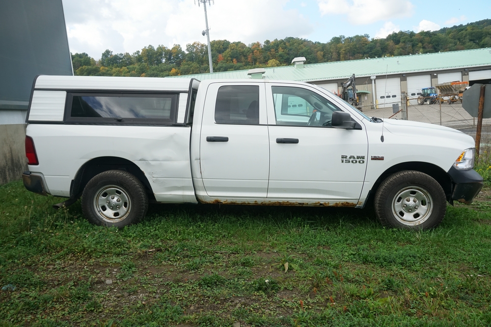 2017 Ram 1500 Express Crew Cab; VIN: 1C6RR7FTXHS773153; Odometer Reads: 94,189. Engine 5.7 V8 HEMI. 395 H.P. MDS VVT. Towing Capacity; 10,150. Trans; Automatic 8 speed. Drive; 4X4. Body damage, Rust, Runs and Drives. Includes; Enclosed Cab, Keys, Title.