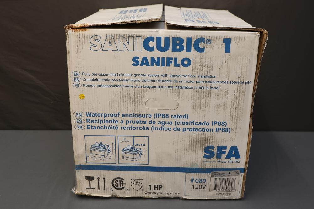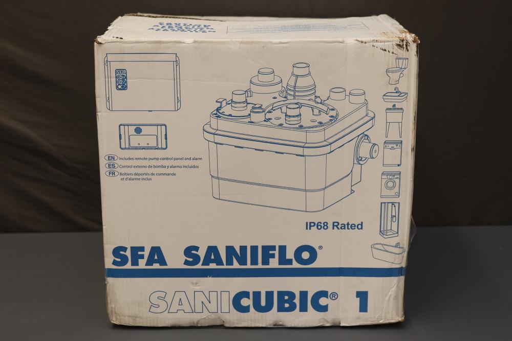 SFA Saniflo Sanicubic 1 Heavy Duty Above Ground Sewage Pump Grinder. Designed for efficient handling of sewage and wastewater, featuring a 1 HP motor with waterproof IP68-rated enclosure. Includes original packaging and components. Pickup only.