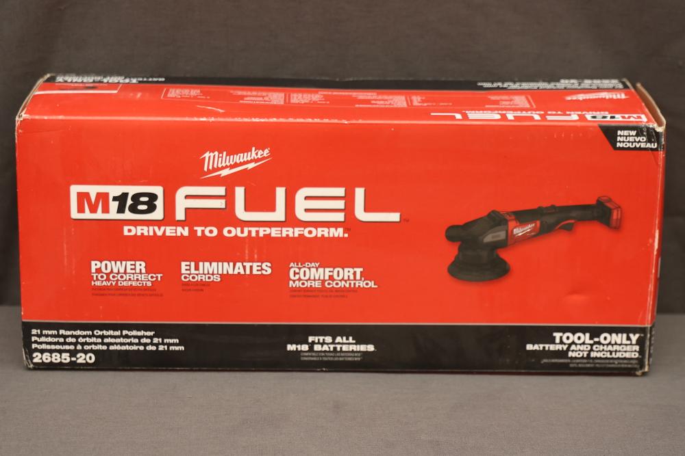 Milwaukee M18 Fuel 21mm Random Orbiter Polisher (Tool Only) 2685-20. Designed with a cordless feature, eliminating the need for cords while offering powerful, consistent performance. Compatible with M18 batteries. Features a 21 mm orbit size and ergonomic design for comfort and precision. Battery and charger are not included. Pickup only.