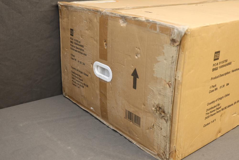 Glacier Bay 36 Inch Undermount Double Bowl 18 Gauge Gunmetal Black Stainless Steel Workstation Kitchen Sink with Spring Neck Faucet, Model ACS3622A2Q-FW. Includes workstation sink, spring neck faucet, and additional accessories. The item is securely packaged in its original box. Box shows visible wear but contents are protected. Pickup only.