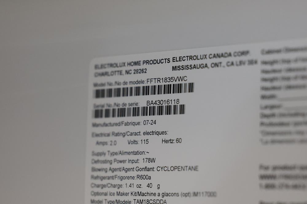 Frigidaire FFTR1835VW 30 inch Top Freezer Refrigerator, Garage Ready, Depth of 18.33 cubic feet. The refrigerator features a top freezer design, spacious interior, and garage-ready functionality. Condition may vary, refer to photos for details. Pickup only.