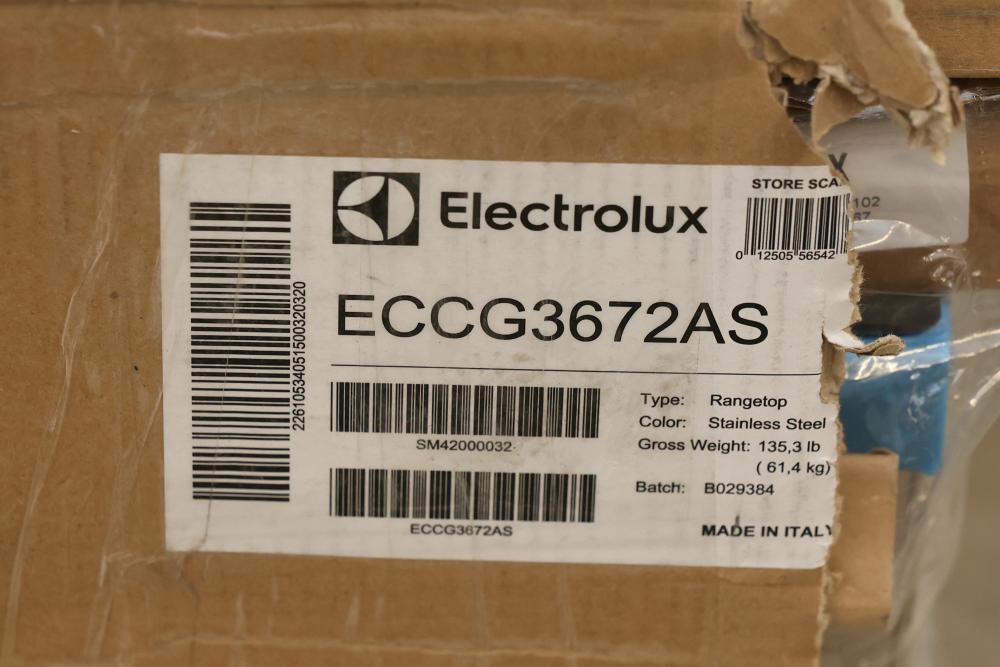 ElectroLux ECCG3672AS 36 inch gas stainless steel rangetop. Item remains in its original packaging and has not been removed from the box. Condition may vary as shown. Pickup only.