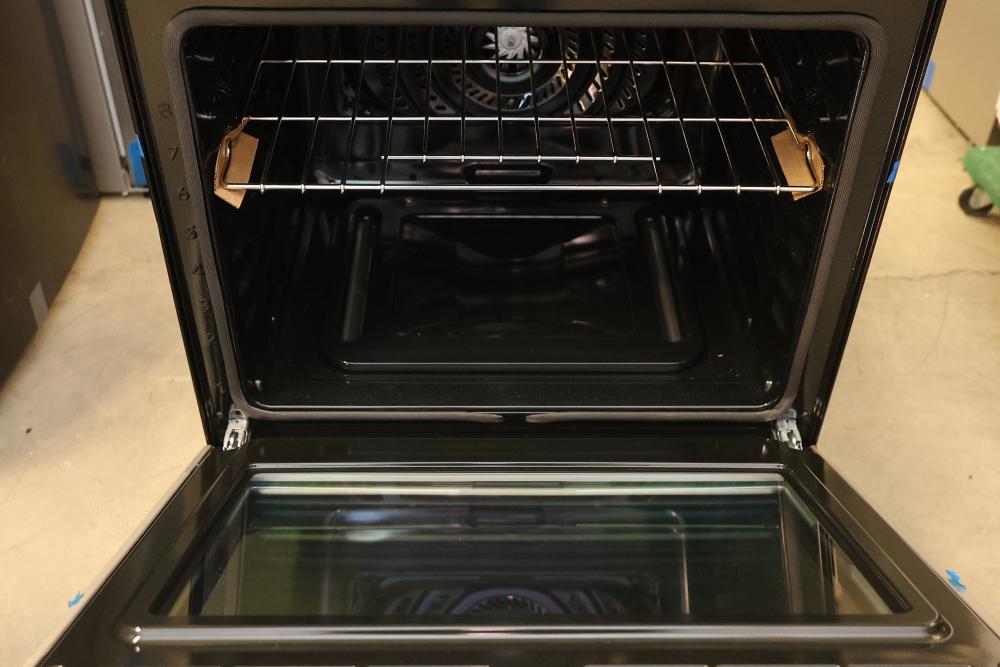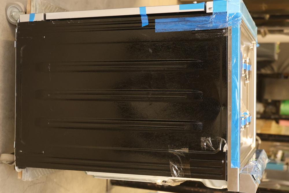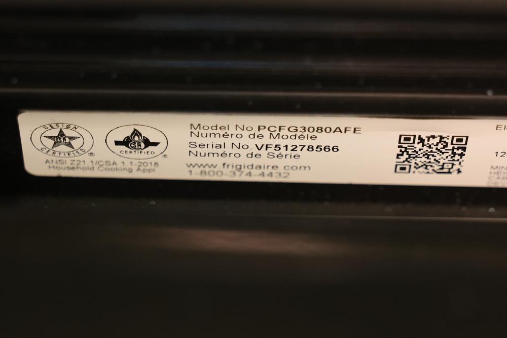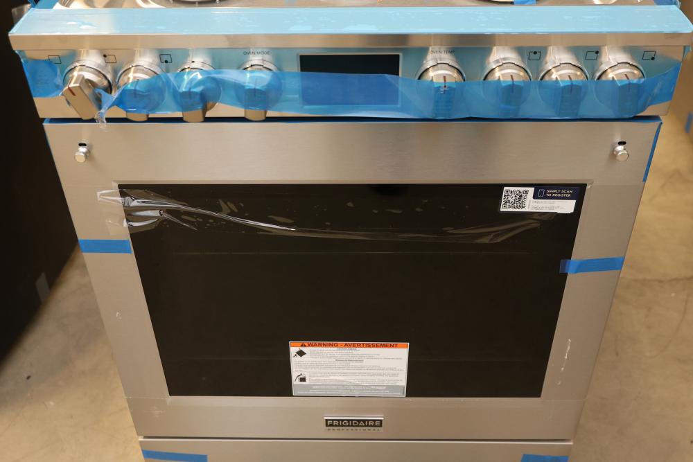 Frigidaire PCFG3080AF 30 Inch Gas Range with 6 sealed burners, a 6.0 cubic feet convection oven, air fry mode, and an air fry tray. Condition may vary, see photos for details. Includes controls with protective blue tape in place. Pickup only.