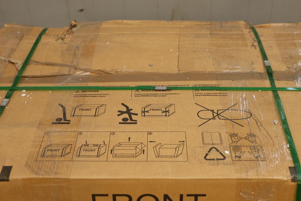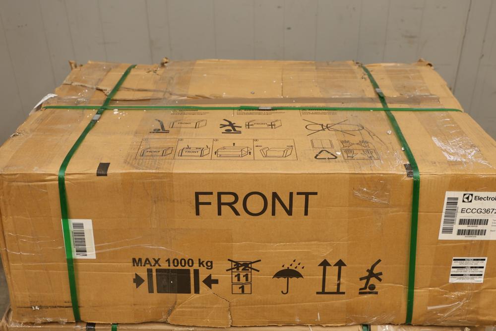 ElectroLux ECCG3672AS 36 Inch Gas Stainless Steel Rangetop. Item has not been removed from the box, and the condition may vary. The box shows visible signs of wear, including dents and tears. Gross weight is 133.5 lbs. Pickup only.