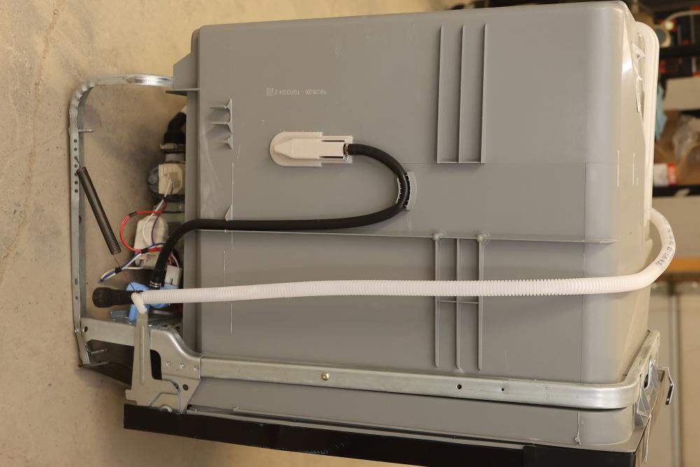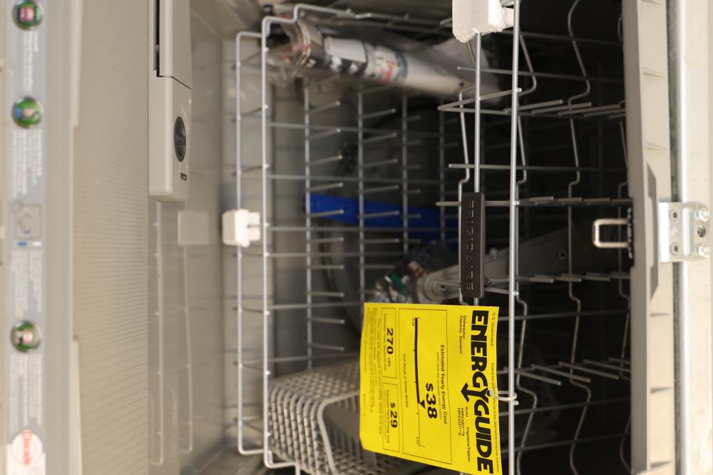 Frigidaire FDPC4221AB 24 Inch Black Front Control Smart Built-In Tall Tub Dishwasher. Unit falls forward when the door is opened fully and requires repair. Includes various visible connections and standard internal racks. See photos for further details and condition of the unit. Pickup only.