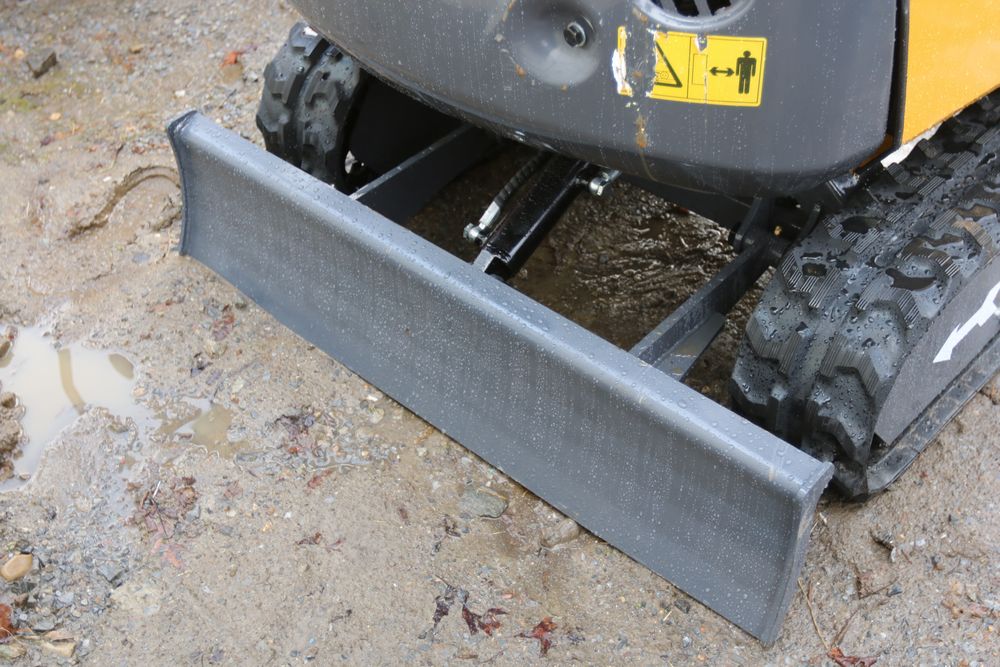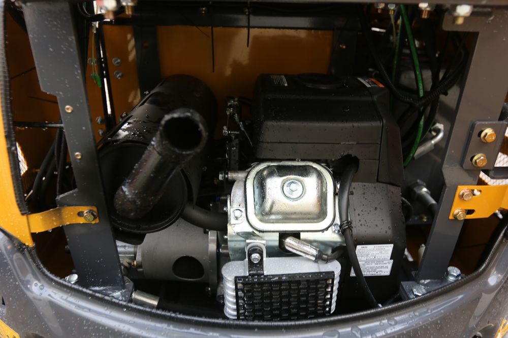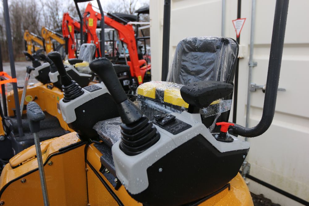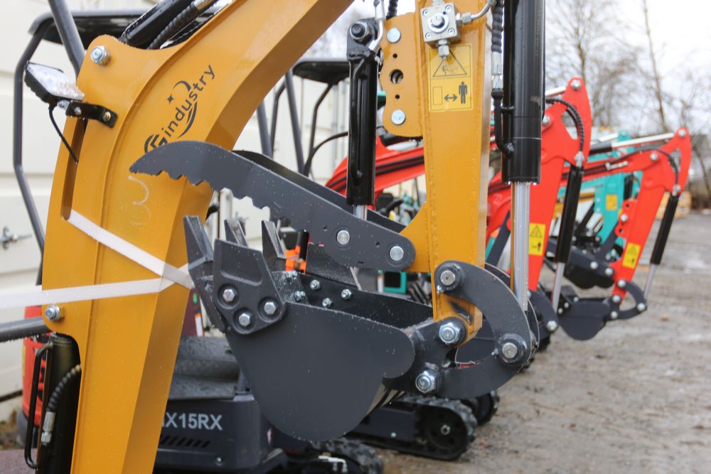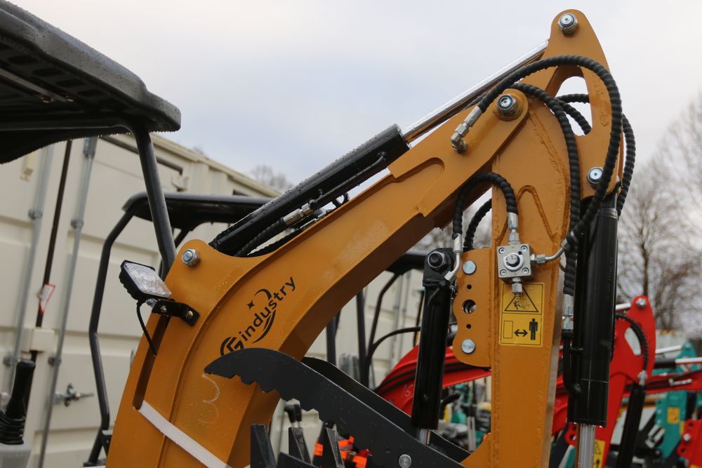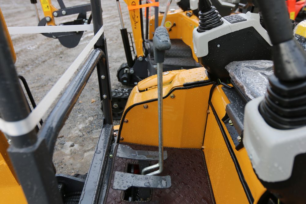 New 2025 CFG Industrial gas powered mini Excavator model QK20R with bucket, dozer blade, hydraulic thumb, aux hydraulics, RATO 23HP, and canopy cover. Hours reading less than 1 hour.