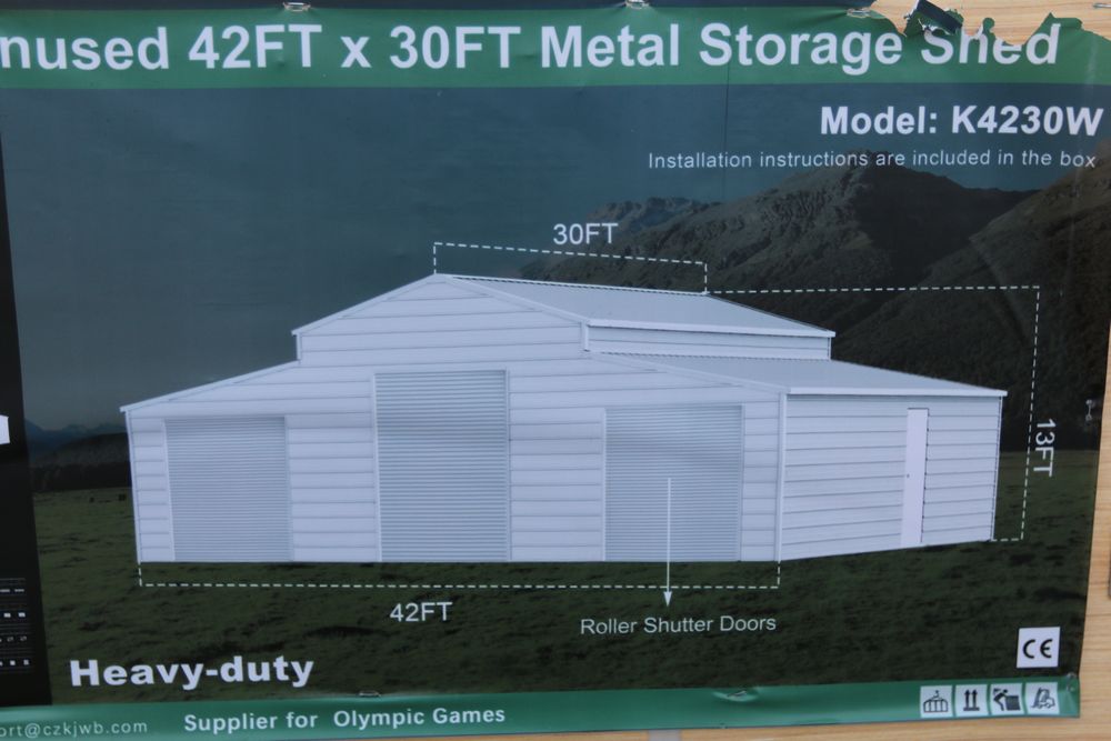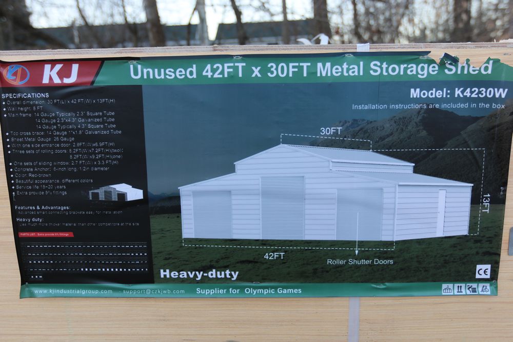 New 2025 Metal Storage Shed 42FT x 30FT Metal Storage Shed model K4230W, in wooden crate.
