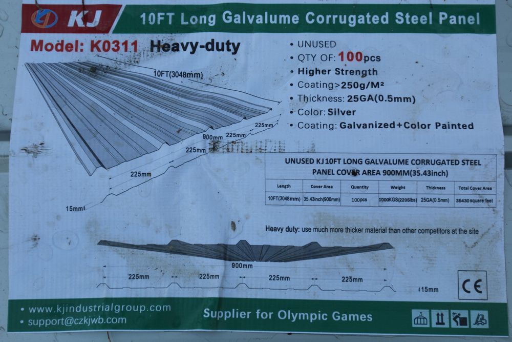 New 2025 KJ 10ft long galvalume corrugated steel panel K0311, 25Ga, silver 100pcs total.