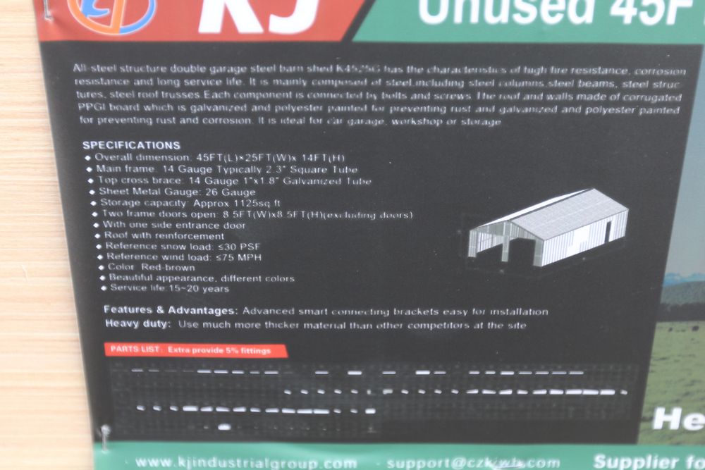 Items include new 2025: CFG Industrial 40' high cube multi-door container, mini excavators; KJ: portable restroom, livestock metal shed, bi-parting iron gates, chicken coop, double garage steel barn, all-steel carport, hot-dip galvanized field fence; Wolverine: hydraulic skid steer stump grinder, skid steer pallet for attachment/post driver/stump grapple/combination bucket attachment, 72" track duty bucket, quick coupler, concrete cutter, mini skid steer auger drive bit, leaf blower, fork extensions, skid steer tree screening bucket attachment; LandHonor: heavy duty plate compactor: mini excavators, mini skid steer loaders, cement mixers, rigging/binder chain/suspension equipment; SKLP fork extensions; Husky black tool locker; plasma cutter & more. Items are located in Pleasant Valley, NY. Preview is highly recommended.